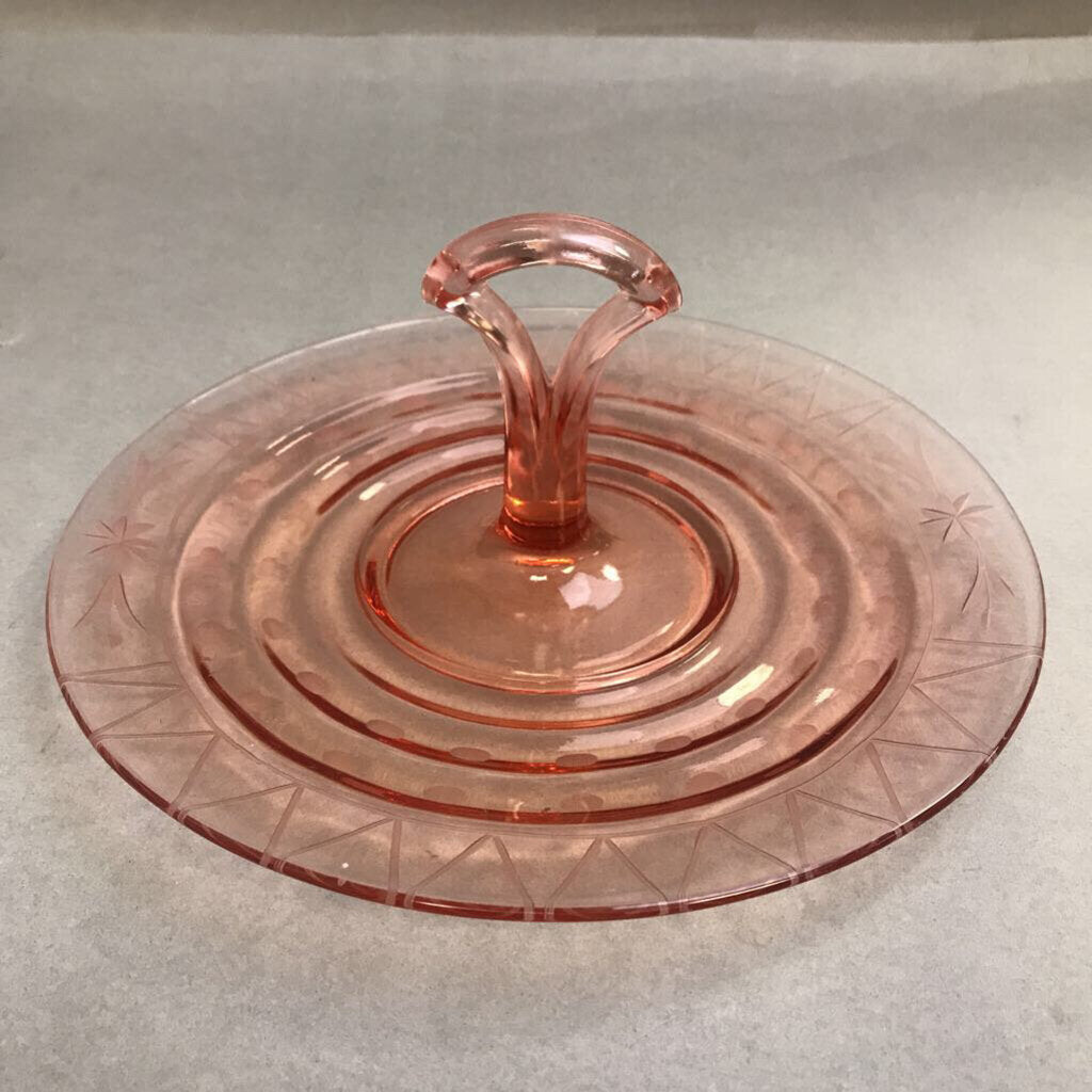 Vintage Pink Depression Glass Serving Platter with Handle (10")