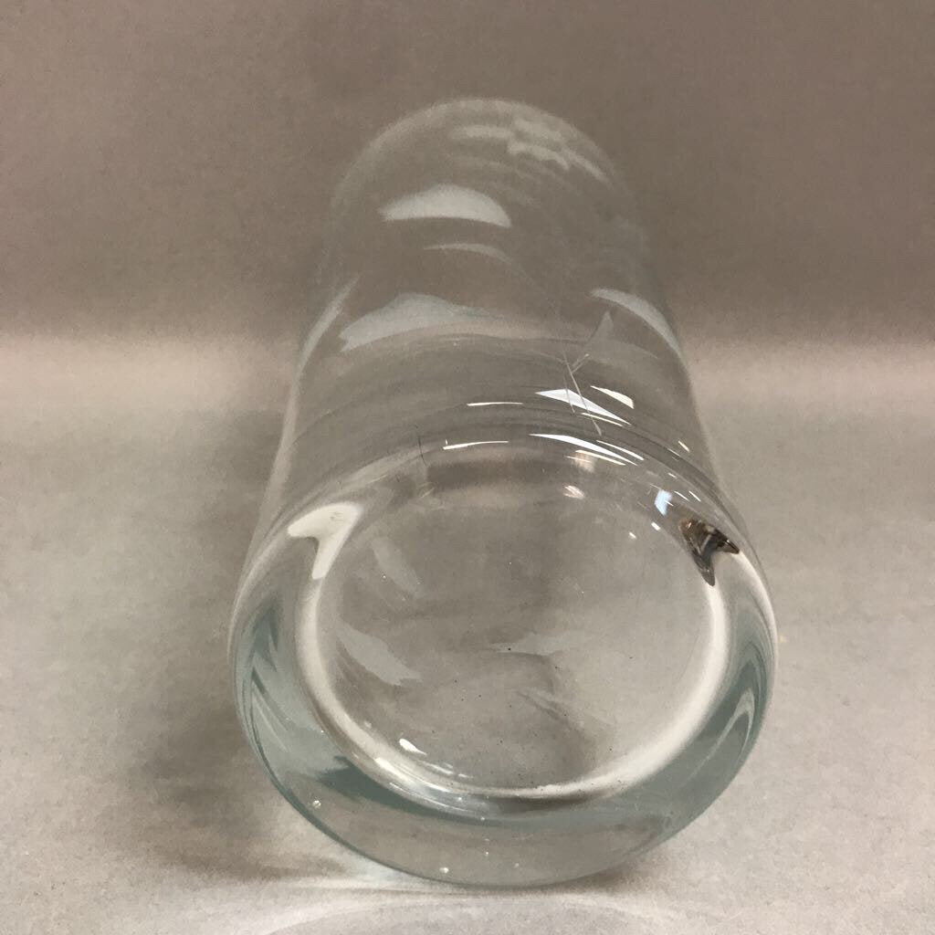 Vintage Tall Clear Glass Vase with Etched Flowers & Leaves (11")