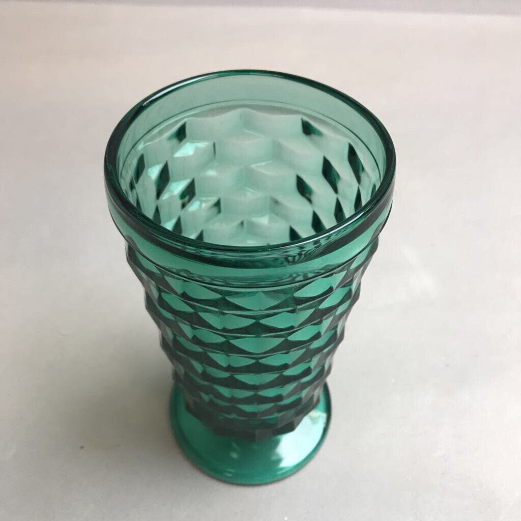 Vintage Teal Indiana Whitehall Colony Cubist Footed Iced Tea Blue Green Glass (6")(As Is)
