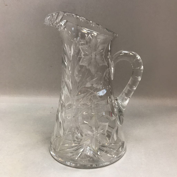 Vintage Crystal Etched Flowers Water Pitcher (10")
