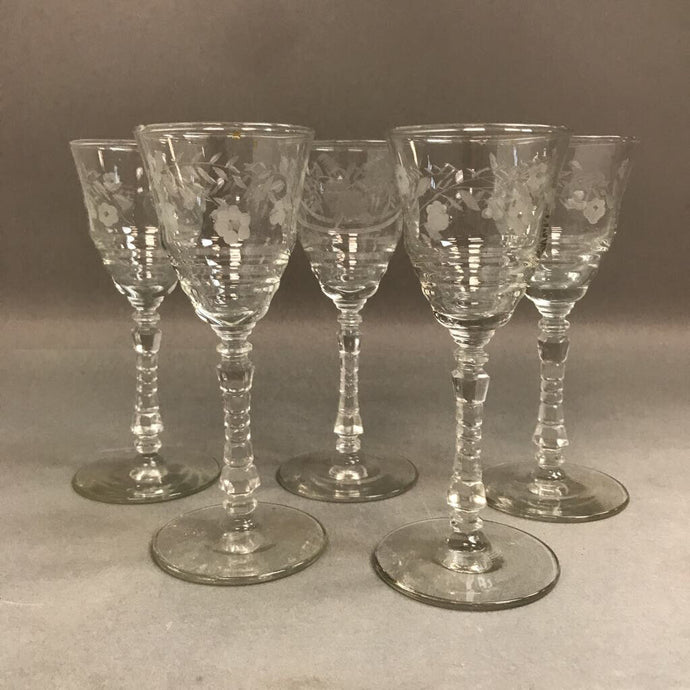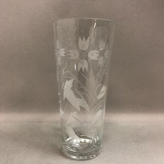 Vintage Tall Clear Glass Vase with Etched Flowers & Leaves (11")