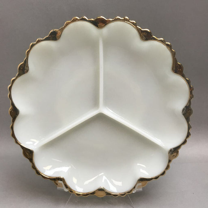 Vintage Fire King Milk Glass Gold Trimmed Divided Plate (10")
