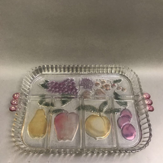 Vintage Indiana Glass Serving Tray Platter Divided Multicolor Fruit Design (9x11)