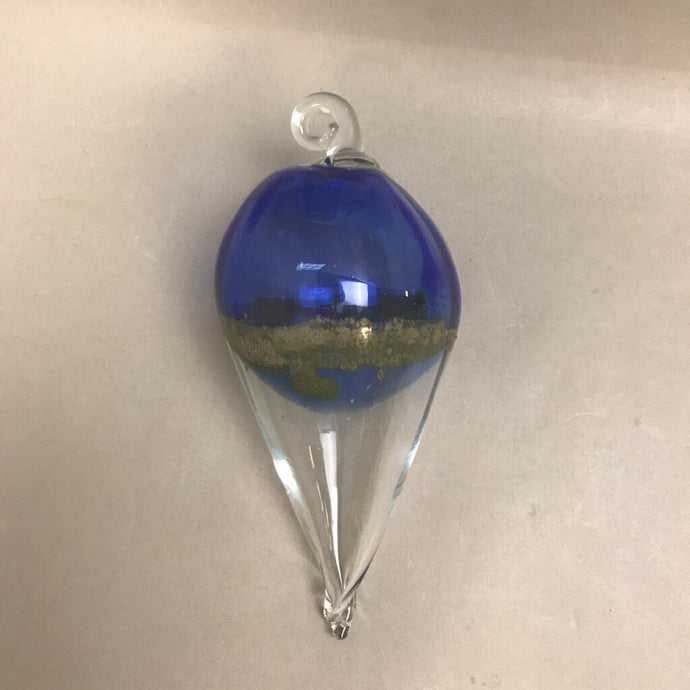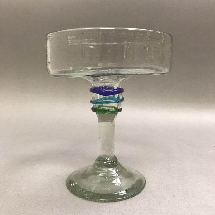 Margarita Glass Mexican Hand Blown Thick Glass Blue Green Bands On Stem (6")