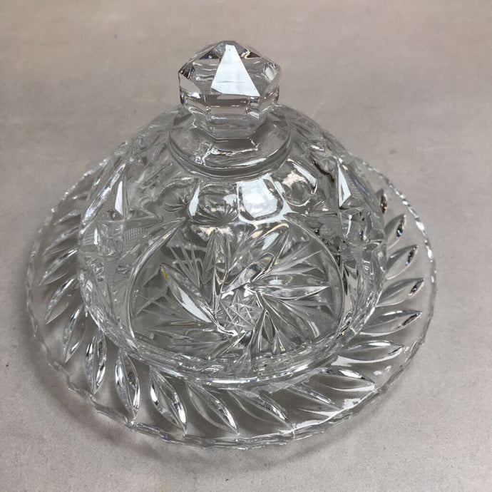 Vintage Pinwheel Lead Cut Crystal Round Covered Dish w/ Dome Lid Heavy (6")