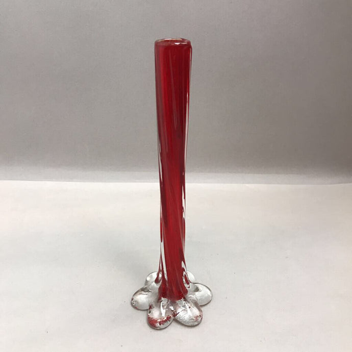 Vintage MCM Petal Base Bud Twist Vase Red Art Glass Retro Style (11")