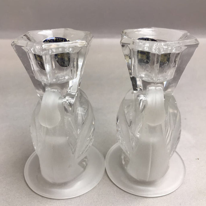 Lead Crystal Clear/Frosted Swan Taper Candlestick Holders Partylite USA (4")