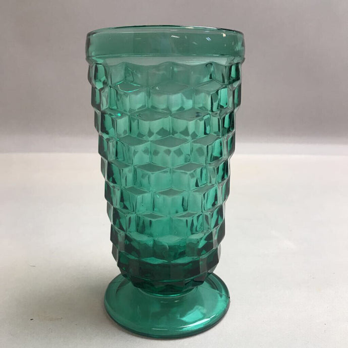 Vintage Teal Indiana Whitehall Colony Cubist Footed Iced Tea Blue Green Glass (6")(As Is)