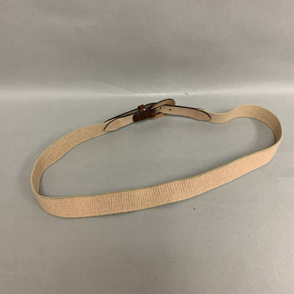 Brooks Brothers Tan Canvas Webbed Brown Leather Belt sz L