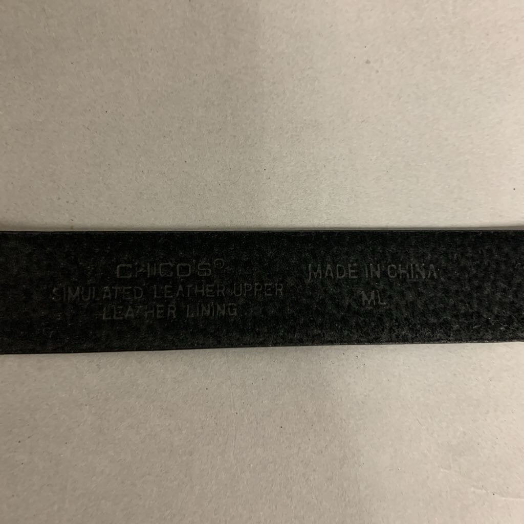 Chicos Black Faux Leather Hook Buckle Belt sz ML