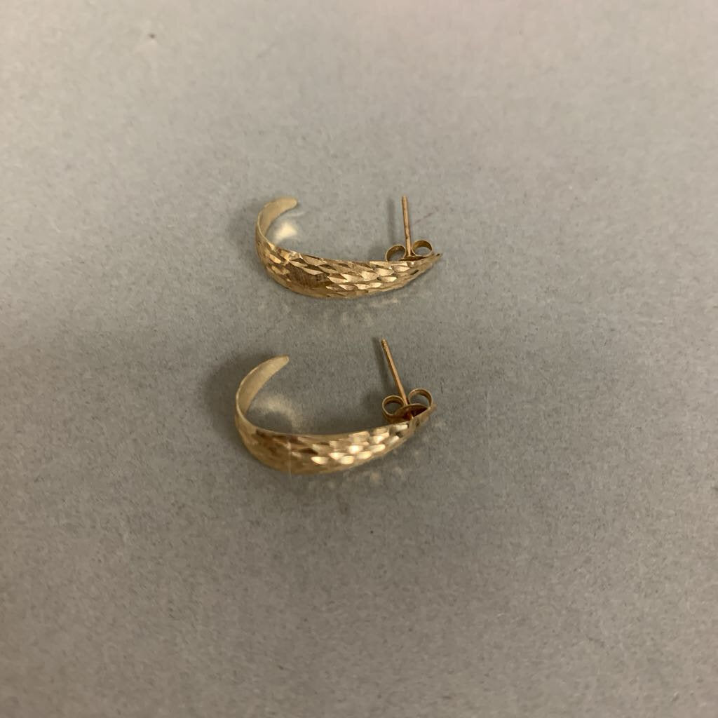 14K Gold Faceted Texture J Drop Earrings (0.8g)