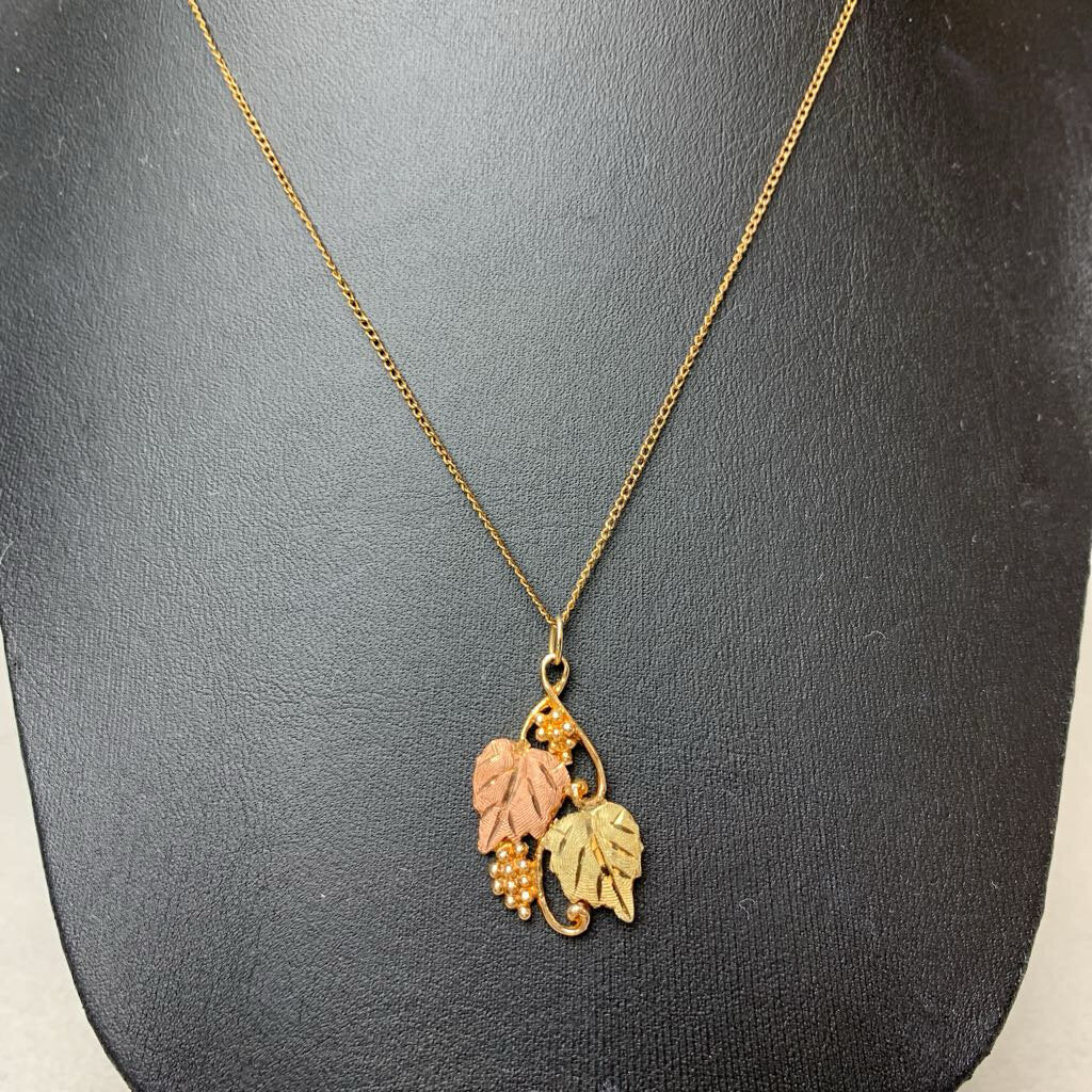 10K Black Hills Gold Pendant on Gold Filled 19" Chain & Hook Earrings Set (5.6g)