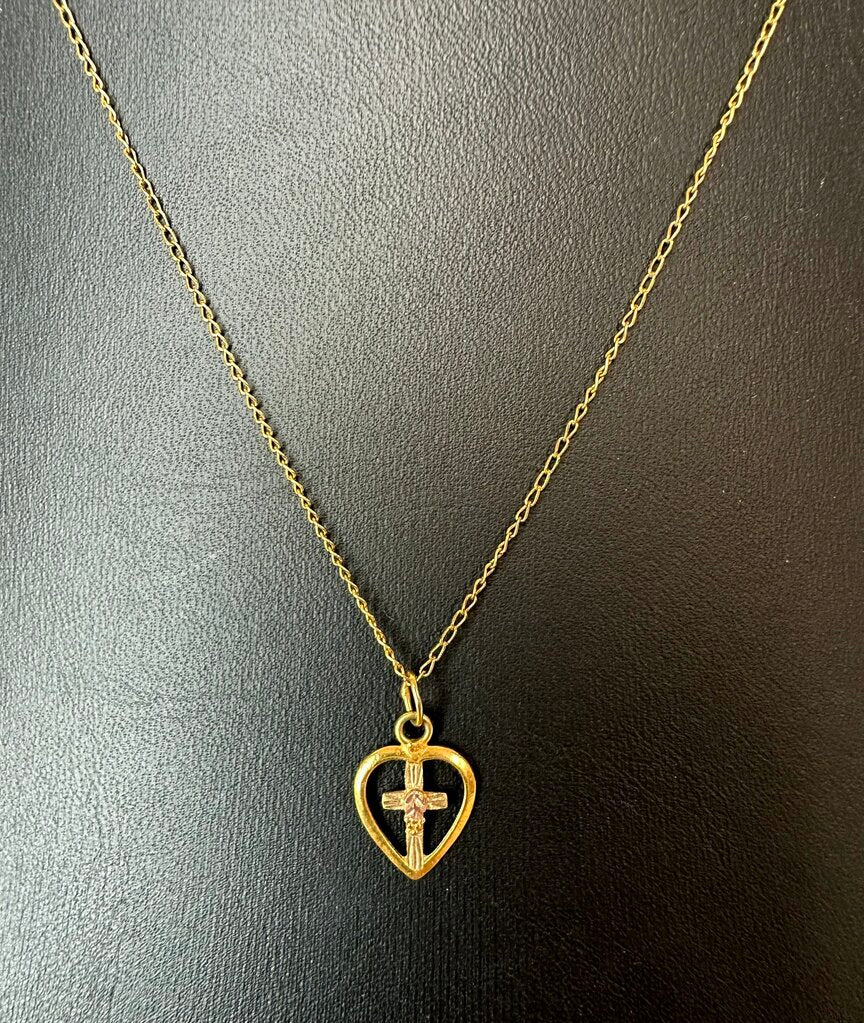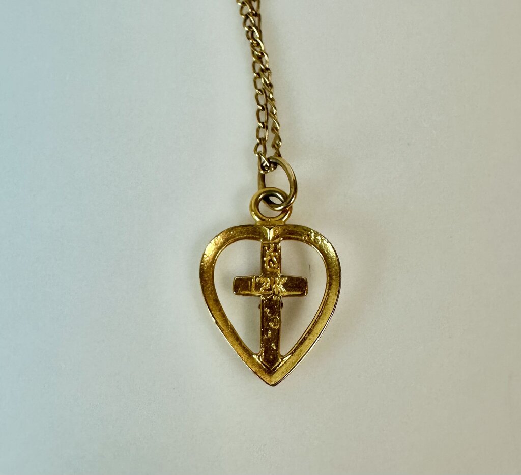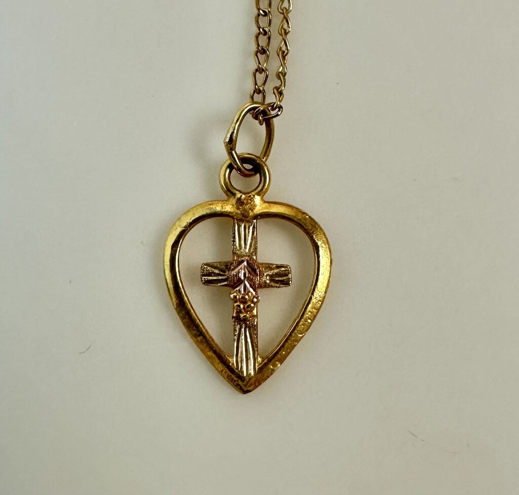 12K Black Hills Gold Cross Heart Pendant on 20" 12K Gold Filled Chain (1.5g)