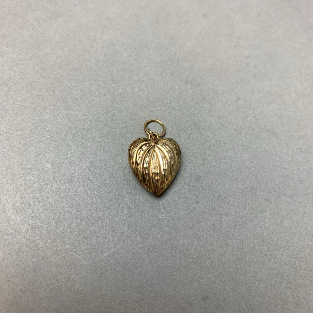 14K Gold Textured Puffy Heart Vintage Charm (0.7g)