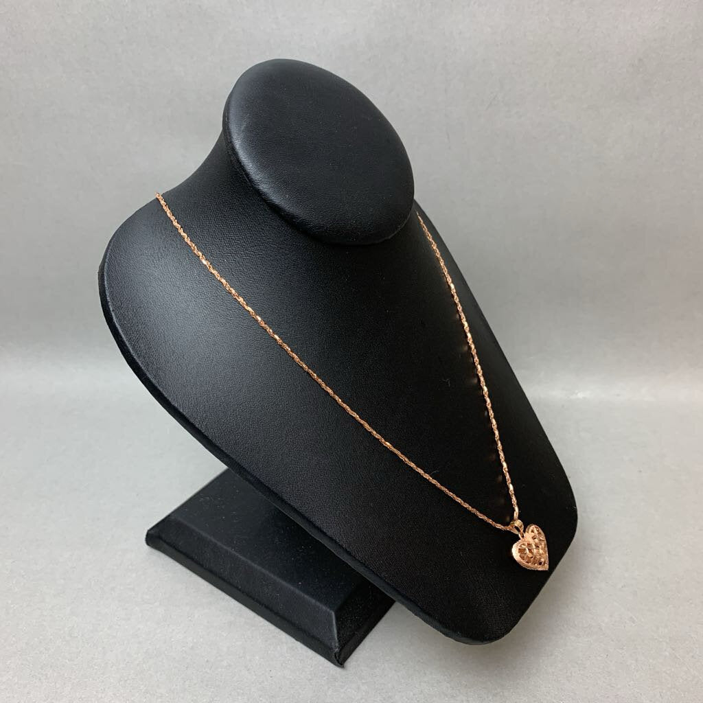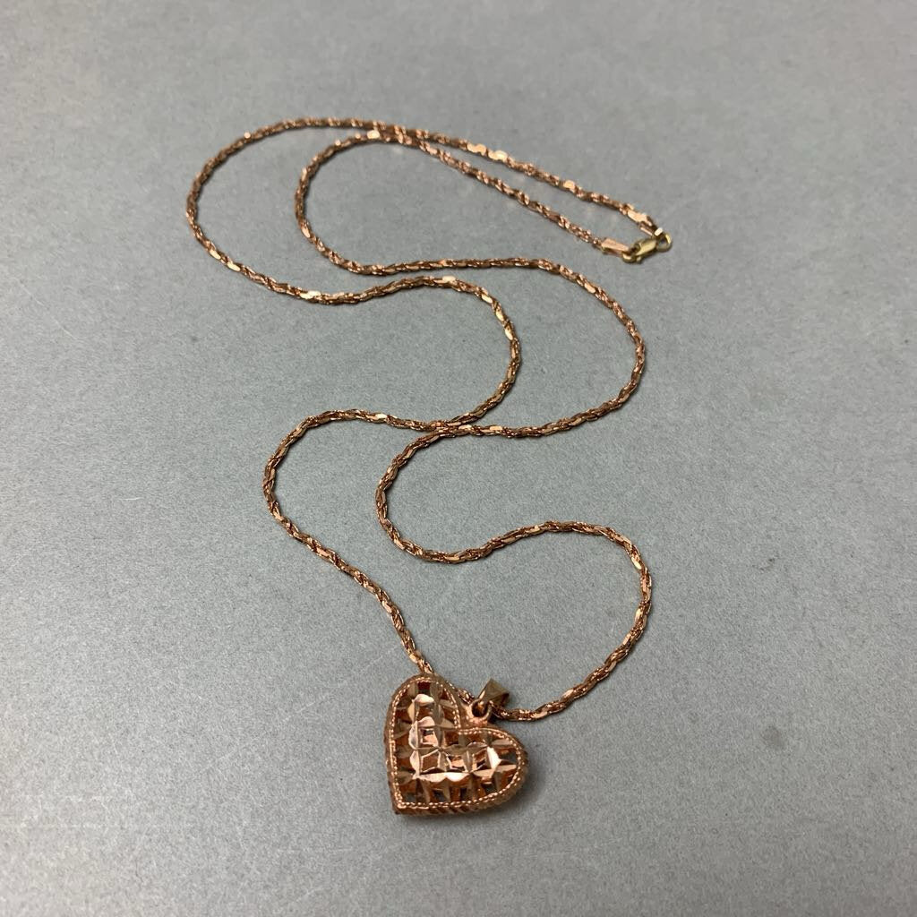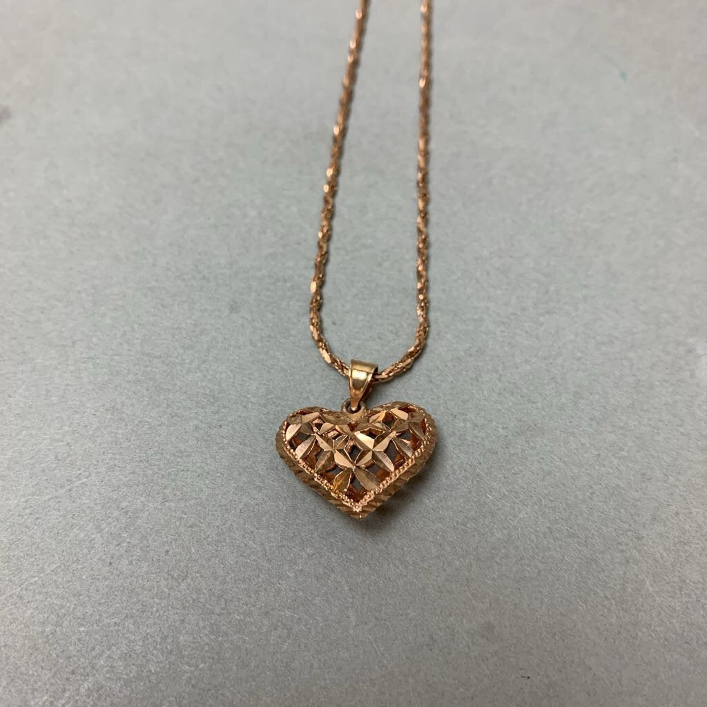 14K Rose Gold Diamond Cut Puffy Heart Pendant on 22" Chain (6.1g)