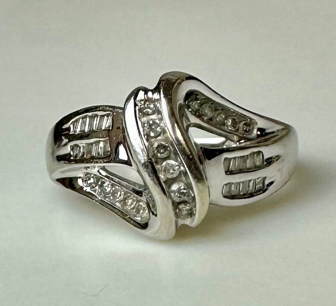 10K White Gold Diamond Ring sz 7 (3.2g)
