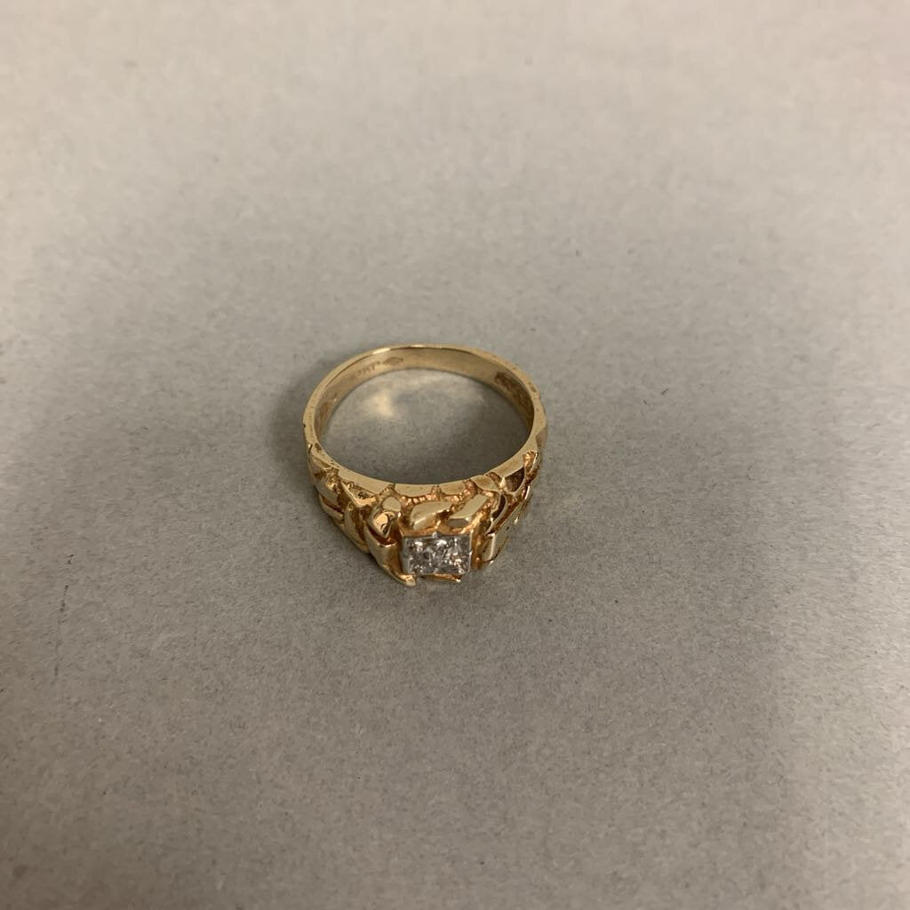 10K Plumb Gold Nugget Diamond Ring sz 9 (4.2g)