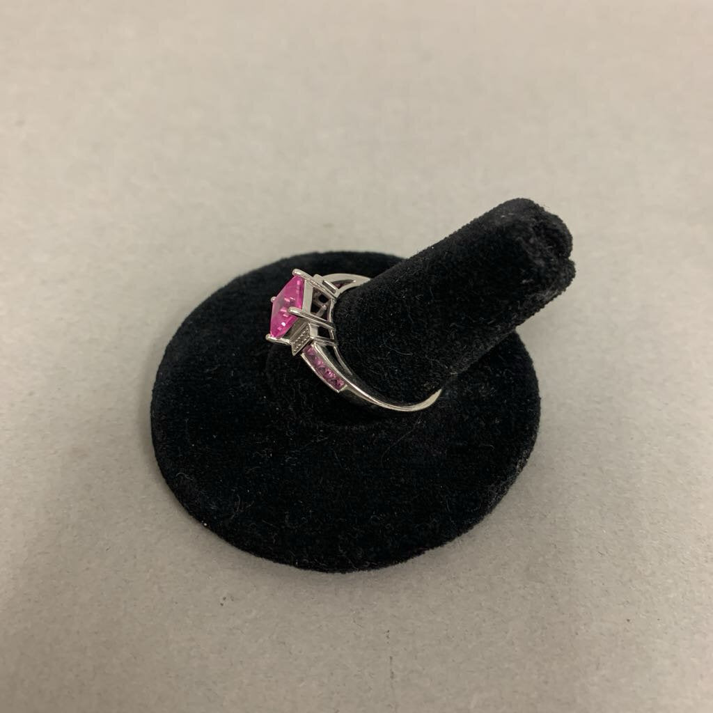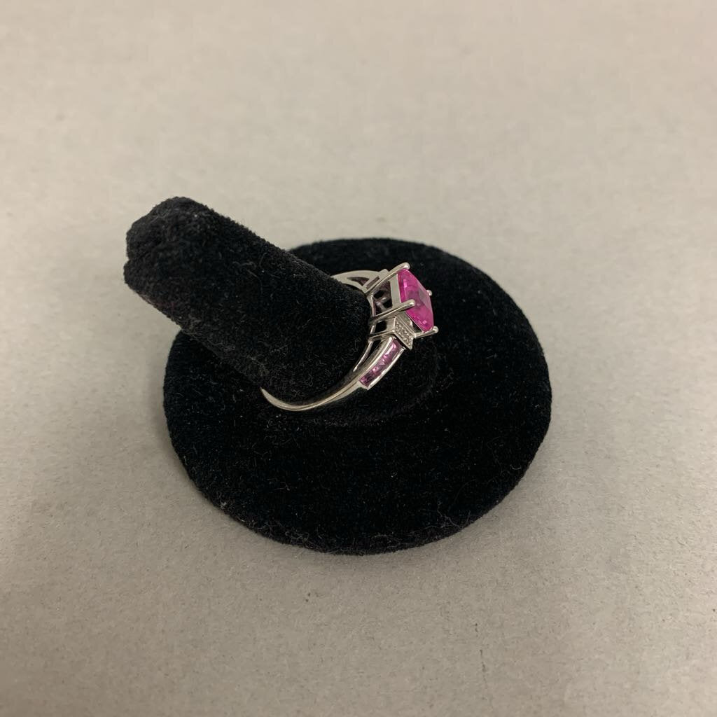10K White Gold Pink Sapphire Diamond Ring sz 7 (2.7g)