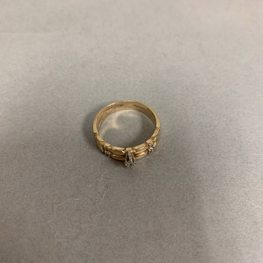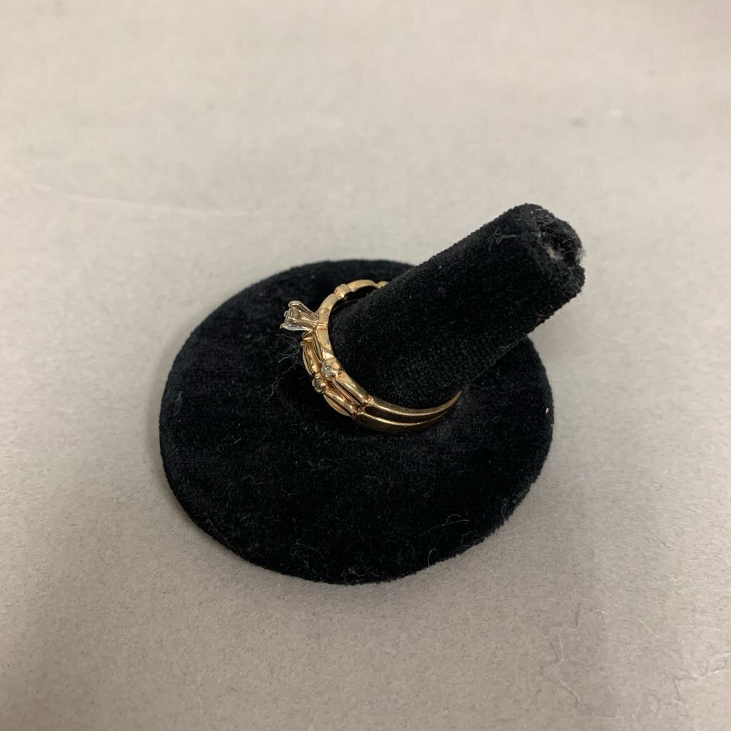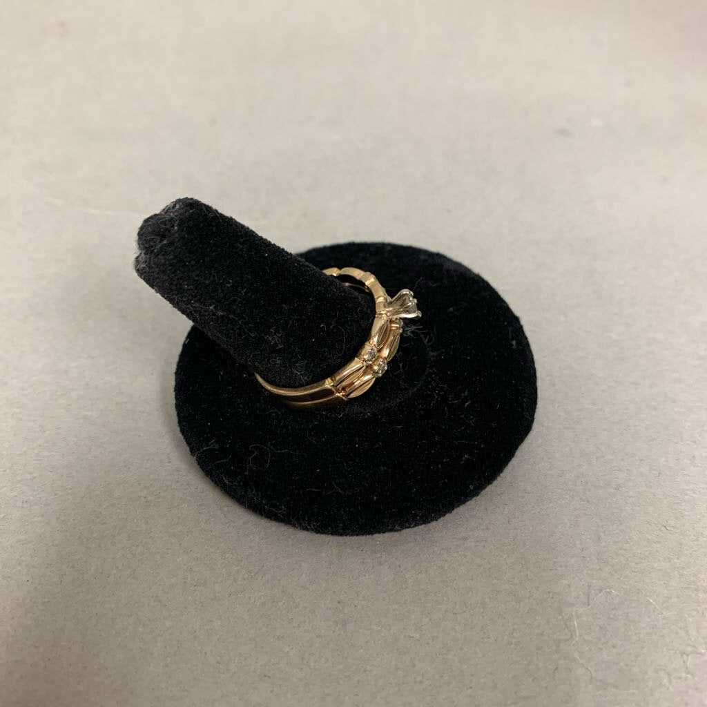 14K Gold Diamond Engagement Ring Wedding Band Attached Set sz 9 (4.5g)
