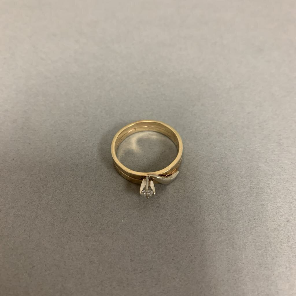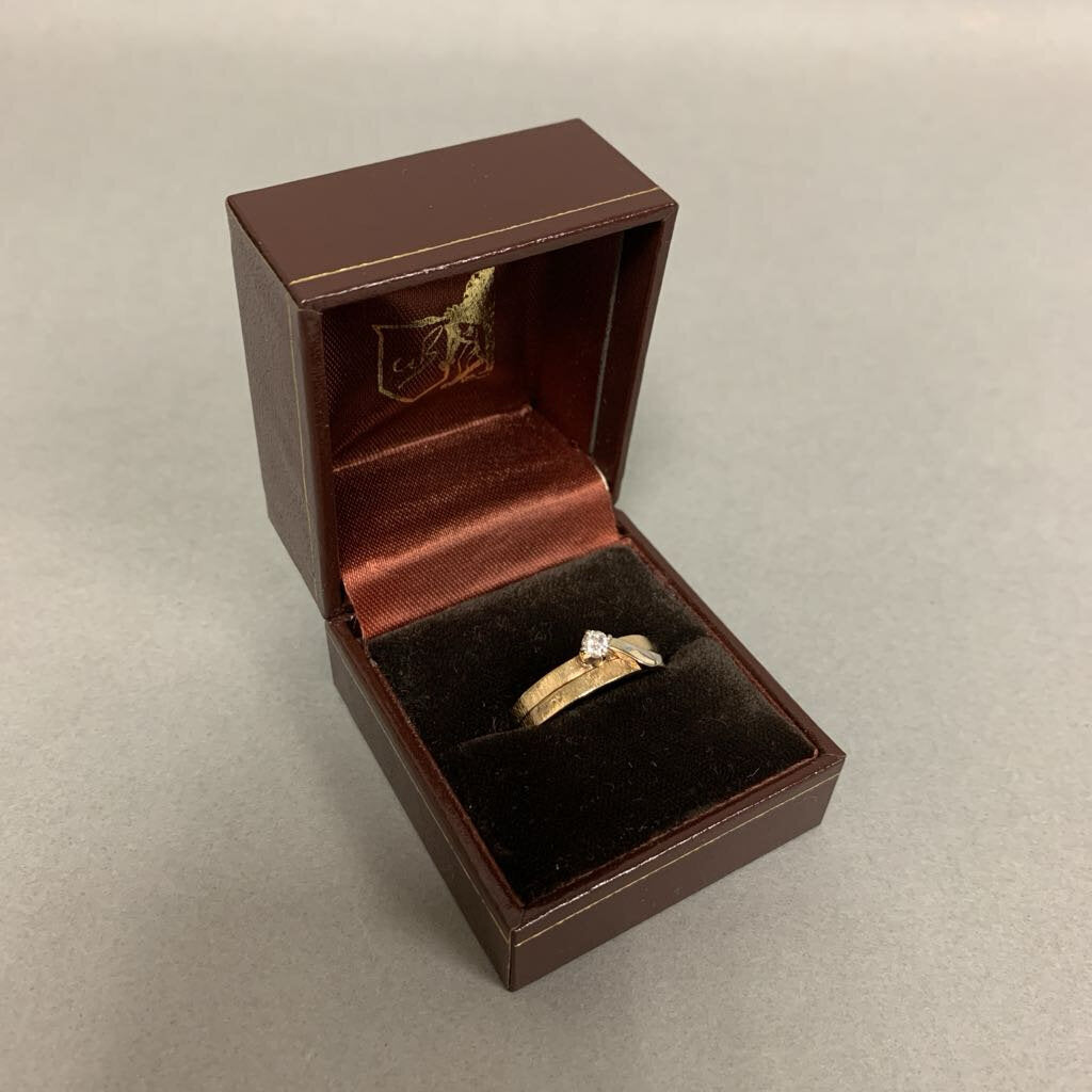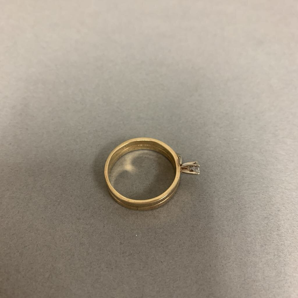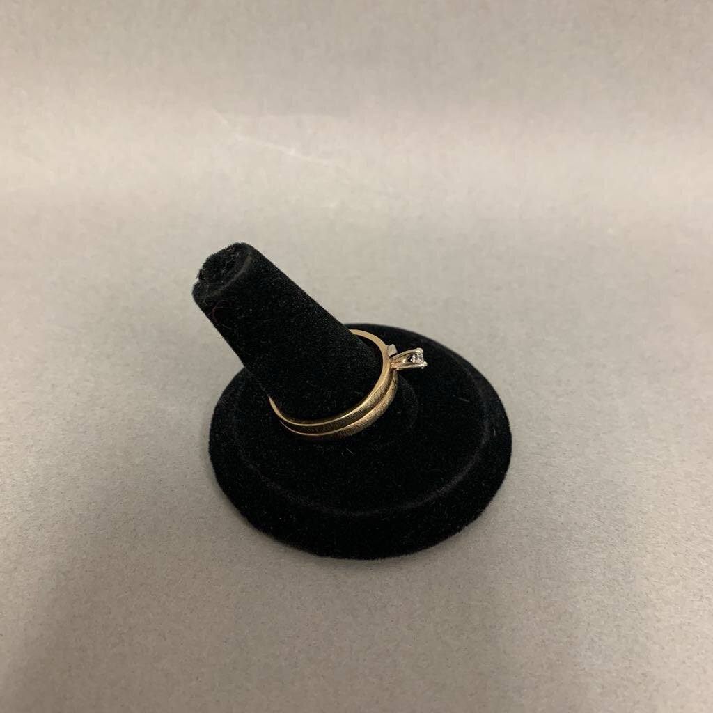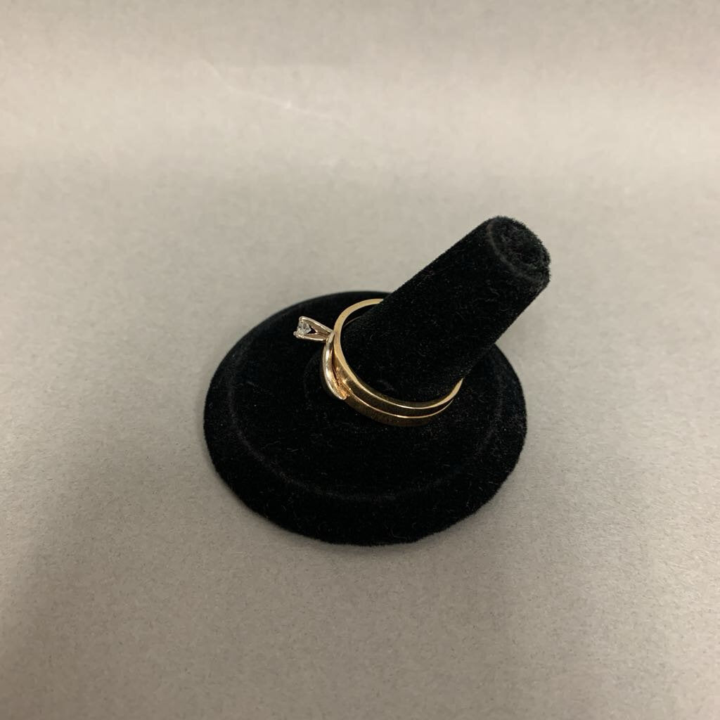 14K Gold Diamond Solitaire Engagement Wedding Stacked Look RIng sz 8.5 (4.7g)