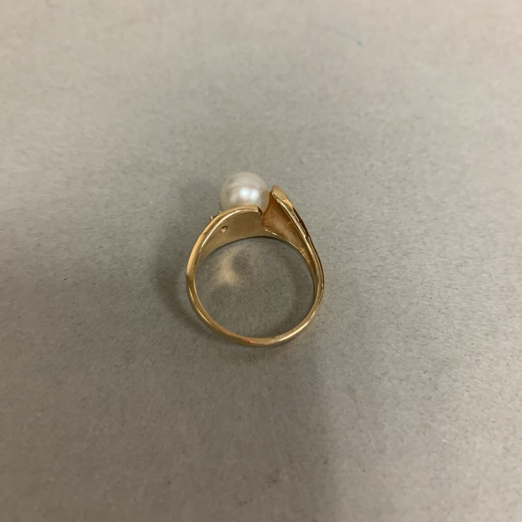 14K Gold Pearl Diamond Ring sz 8 (4.7g)