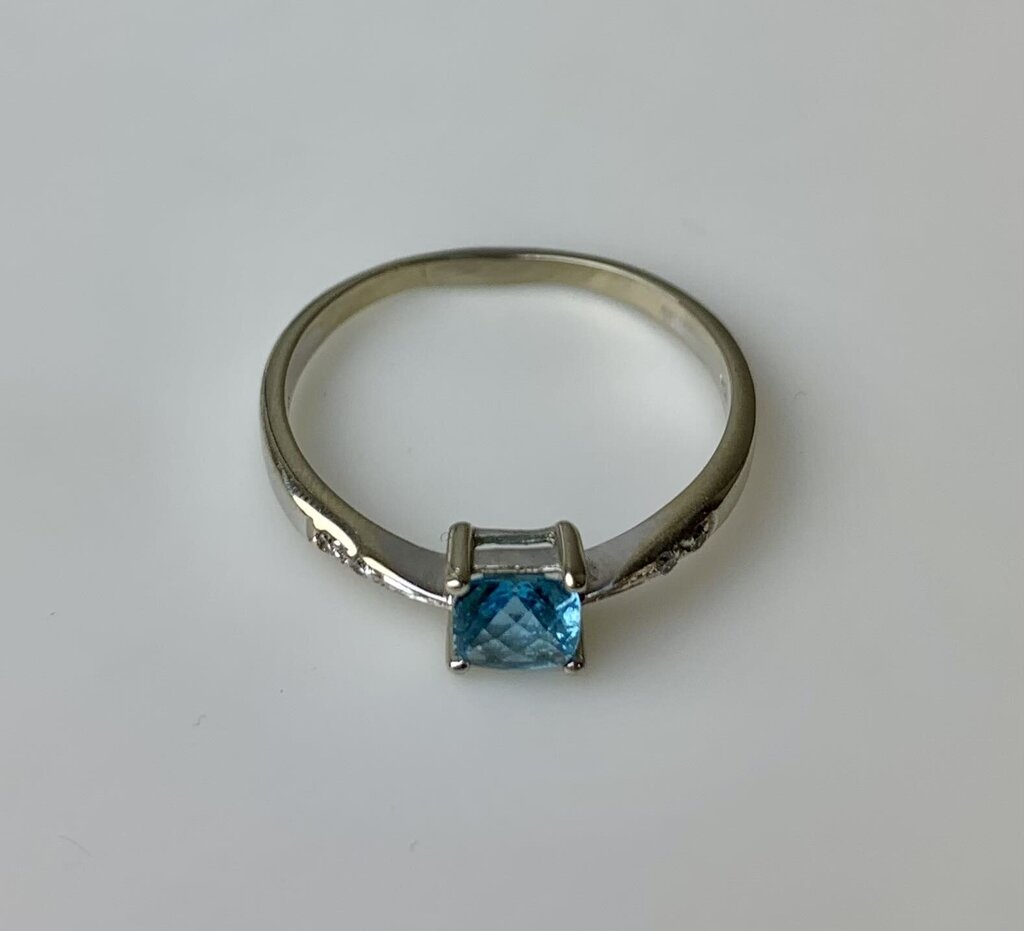 14K White Gold Aquamarine Topaz Ring sz 8.5 (1.9g)