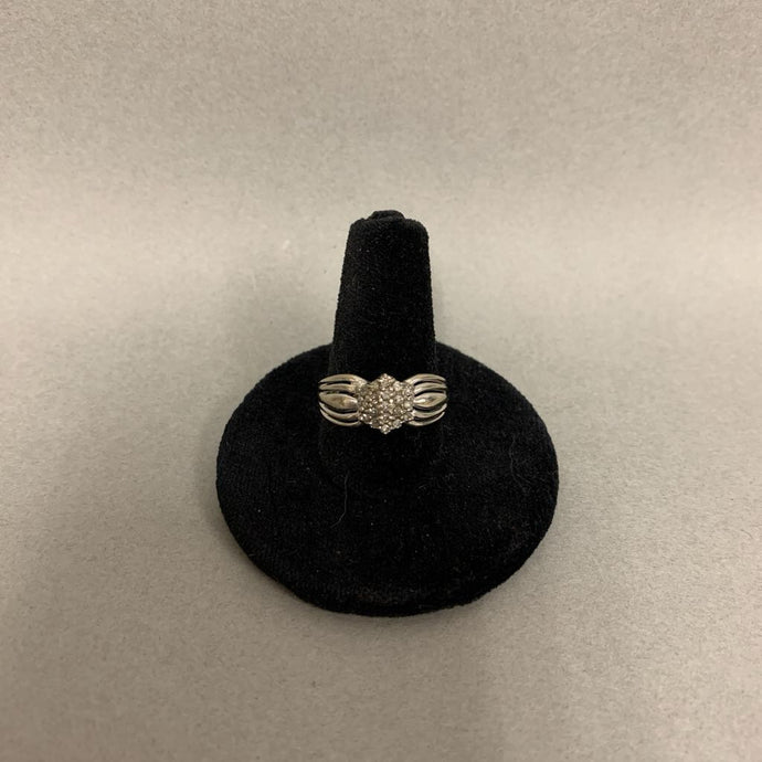 10K White Plumb Gold Diamond Ring sz 7 (2.5g)