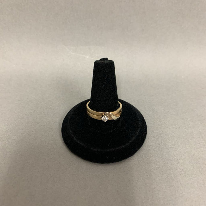 14K Gold Diamond Solitaire Engagement Wedding Stacked Look RIng sz 8.5 (4.7g)
