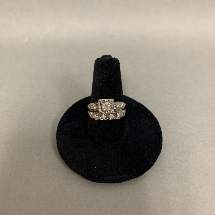 14K White Gold Diamond Engagement Ring w/ Attached Wedding Ring sz 6.5 (4.3g)