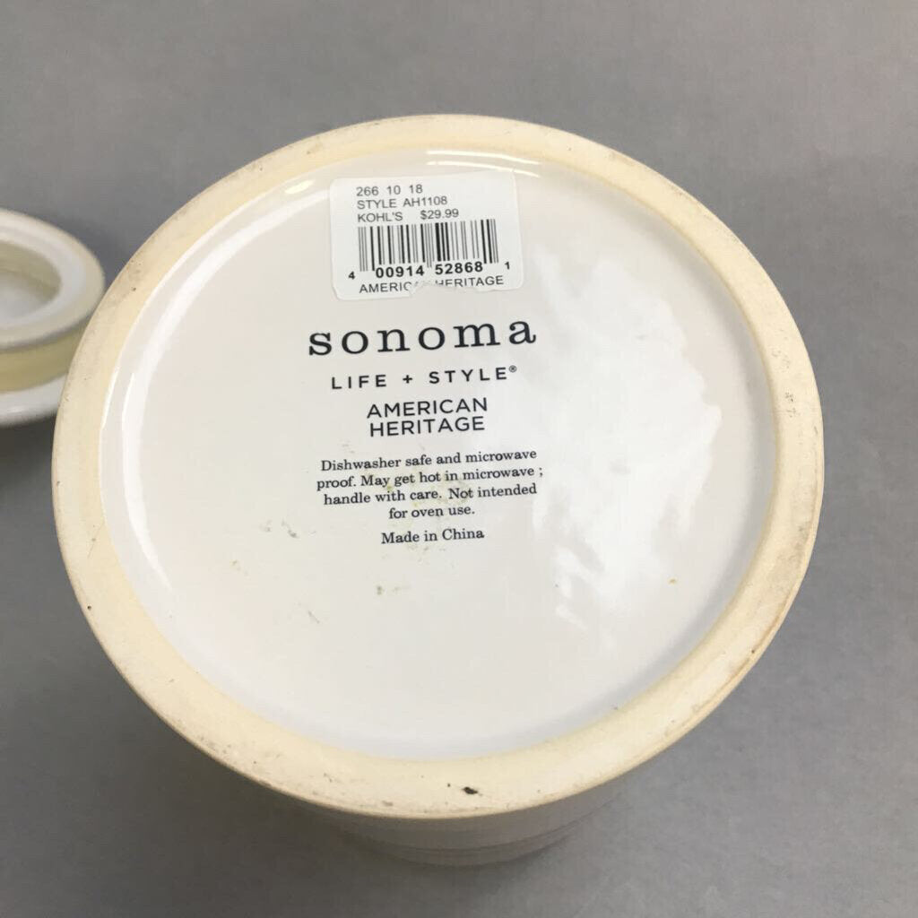 Stoneware Red & White Canister (7")