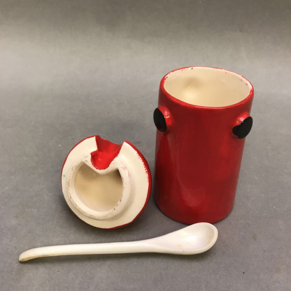 Vintage Artmark Japan Ceramic Red Fire Hydrant Jam Jar With Spoon (3")