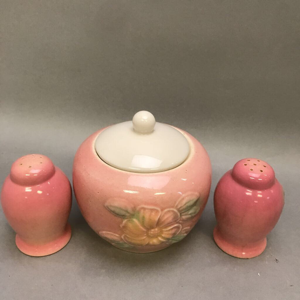 Vintage Hall Pottery Sugar Bowl with Salt & Pepper Set