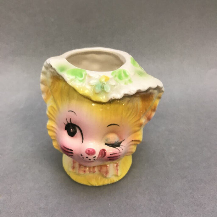 Vintage Enesco Winking Kitty Toothpick Holder Miss Priss Cat Anthropomorphic (3")