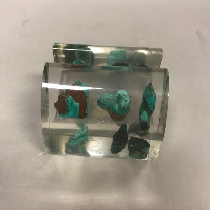 Vintage Molded Lucite w Turquoise Chunks Letter Holder (3")