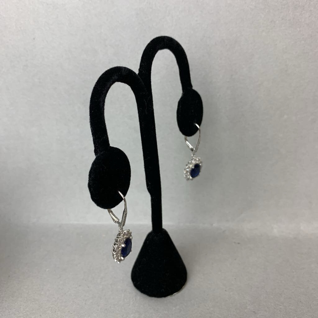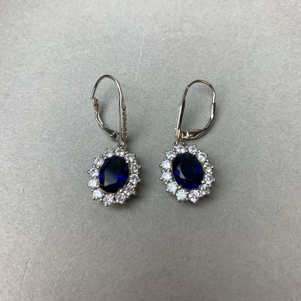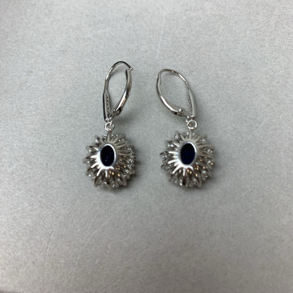Amy & Annette 18K Gold Plated Sterling Simulated Sapphire CZ Earrings (1.25")