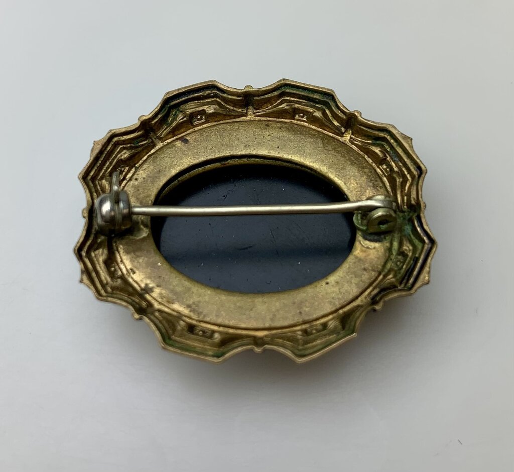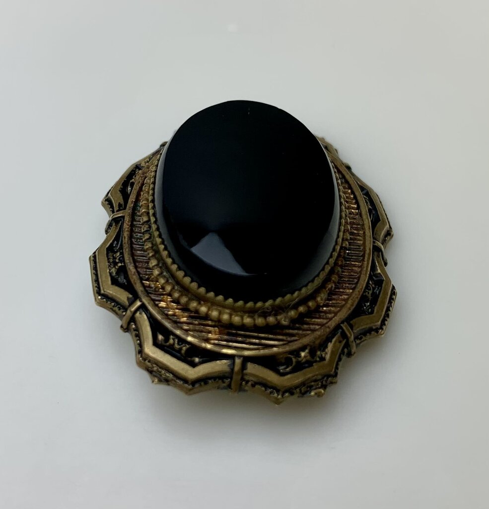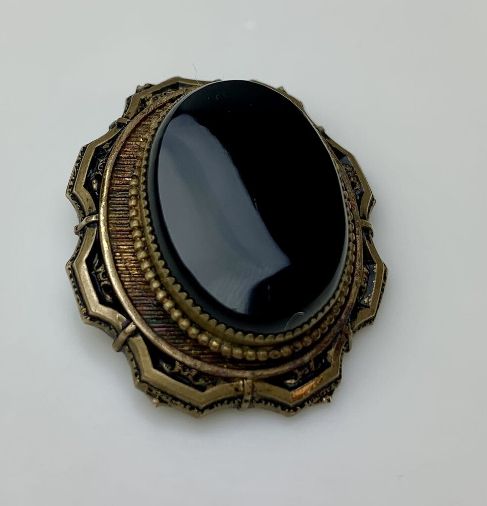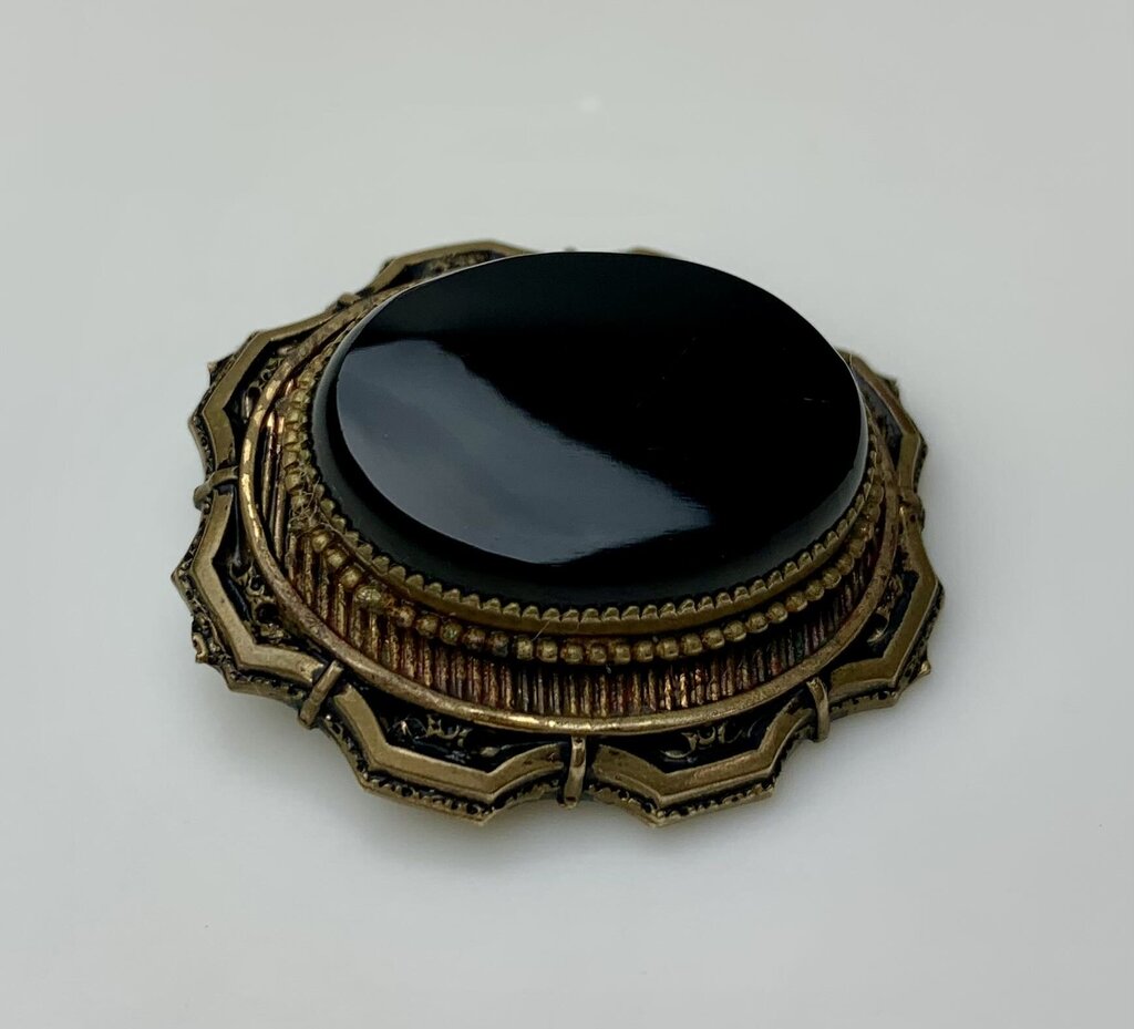 Antique Victorian Onyx Gold Filled Mourning Brooch Pin (1.5")