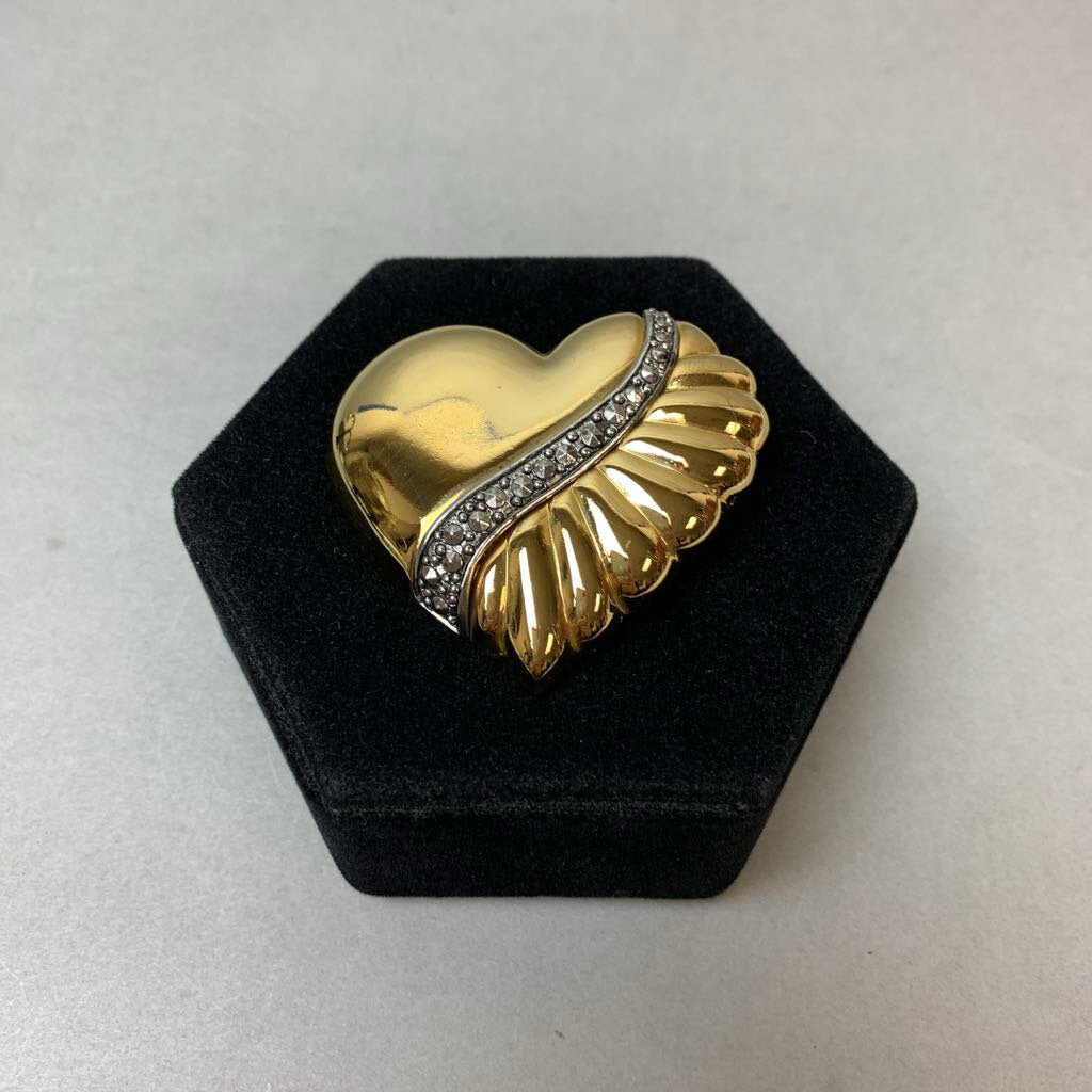 Avon Gold & Silver Tone Marcasite Heart Brooch Pin w/ Clip Earrings Set (2.5," 1")