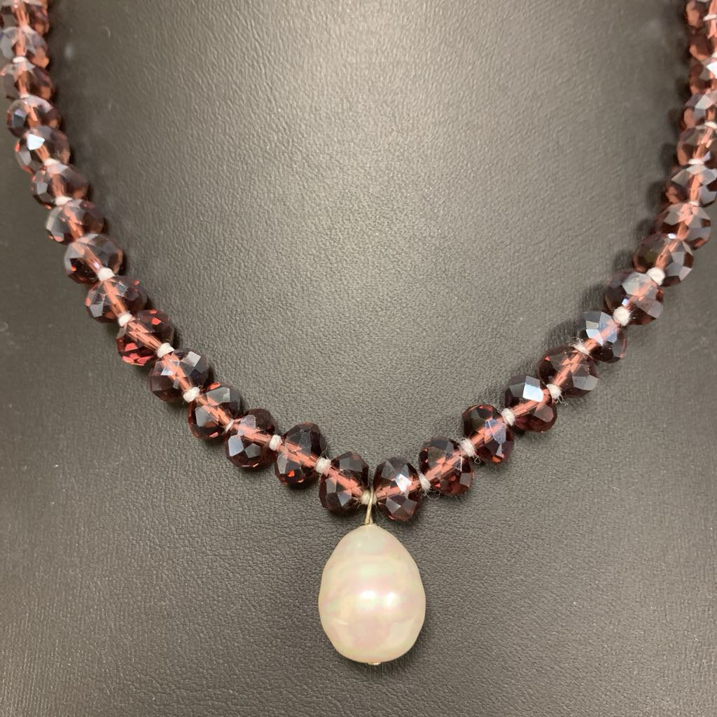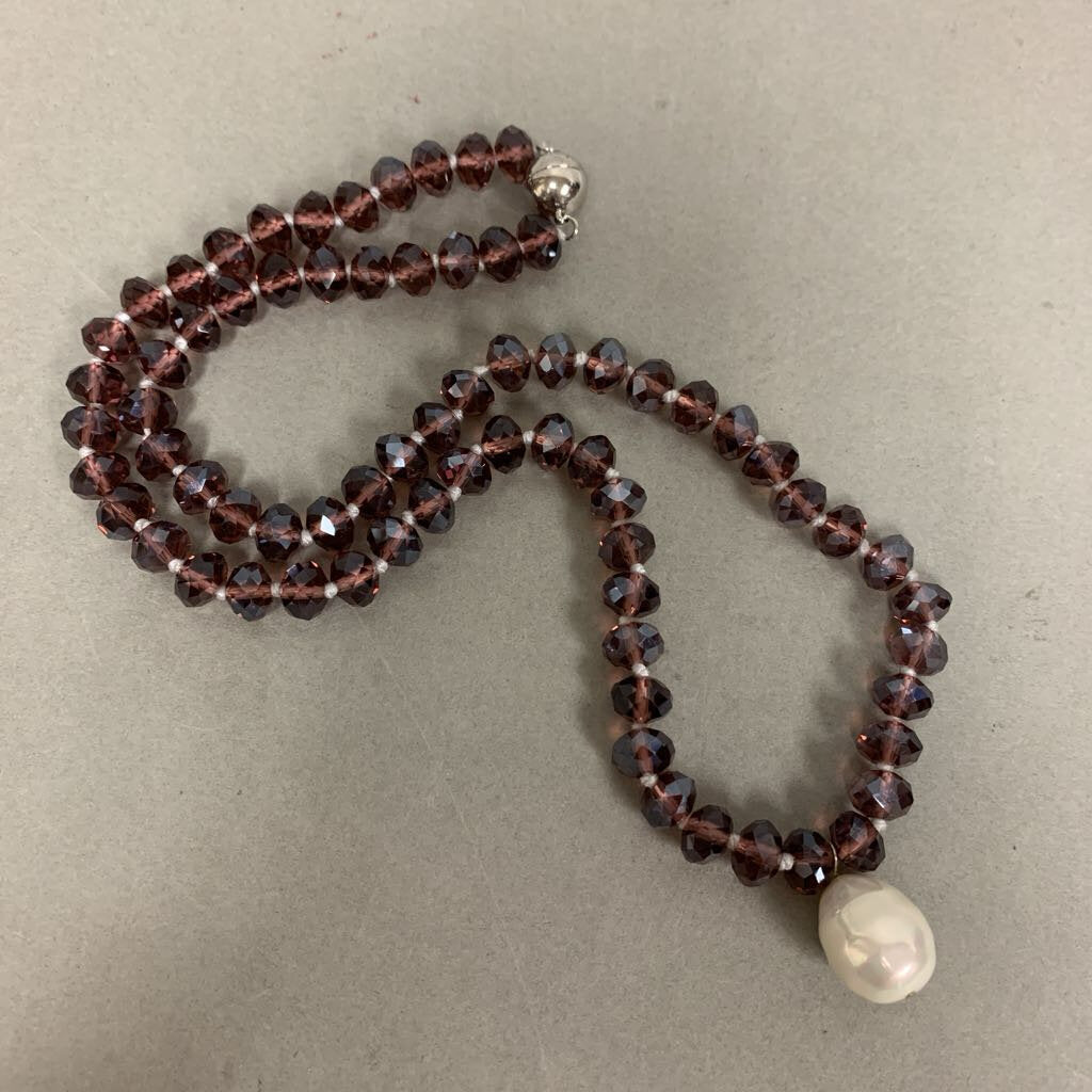 Baroque Pearl Pendant on Purple Crystal Beaded Magnetic Clasp Necklace (20")