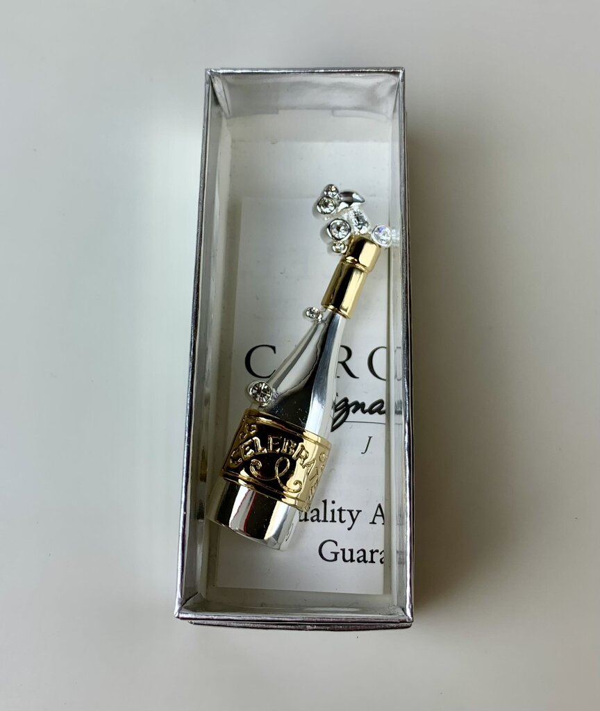Carolee Limited Edition Celebrate Crystal Bubble Champagne Bottle Brooch Pin (2.5")