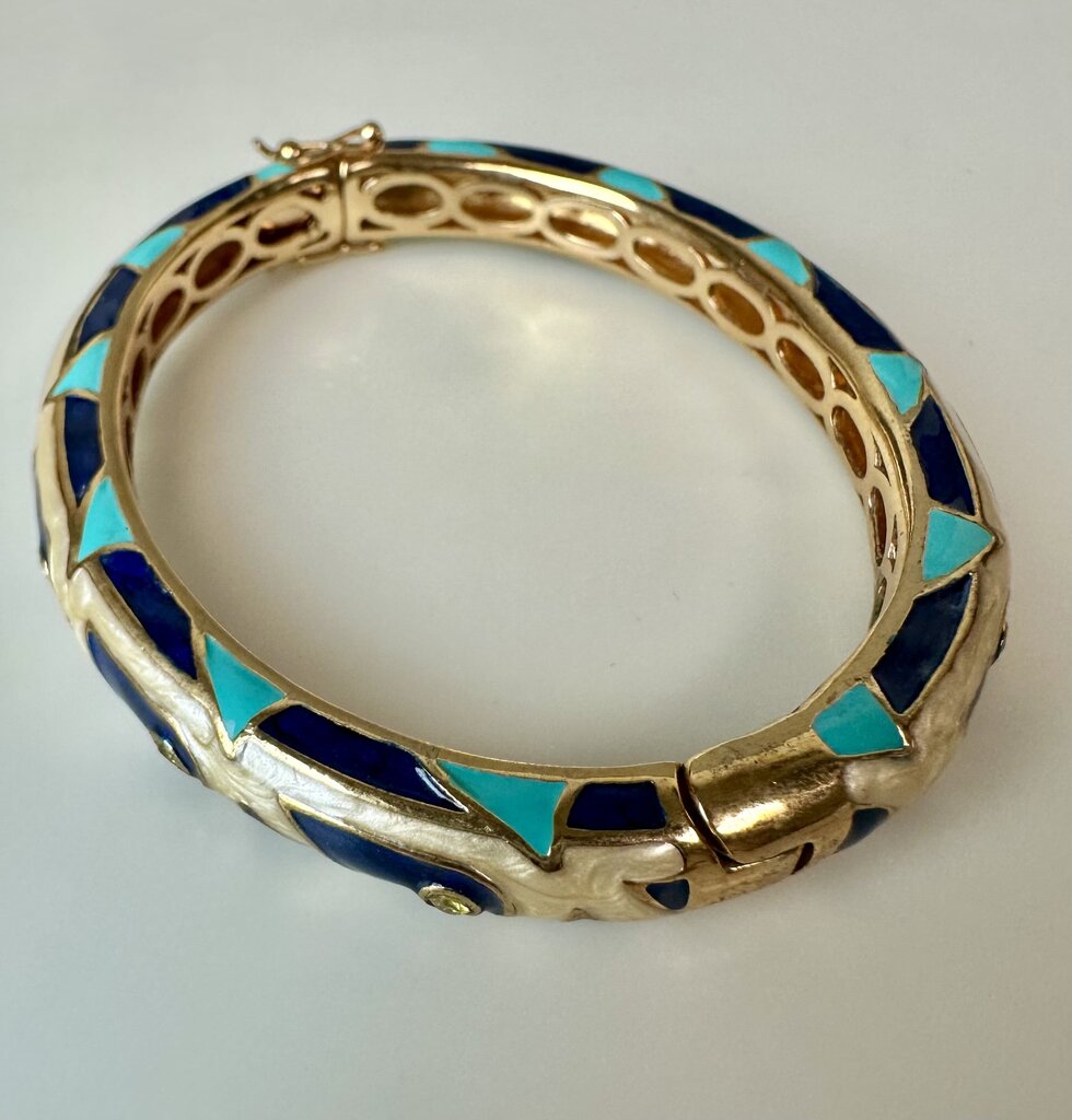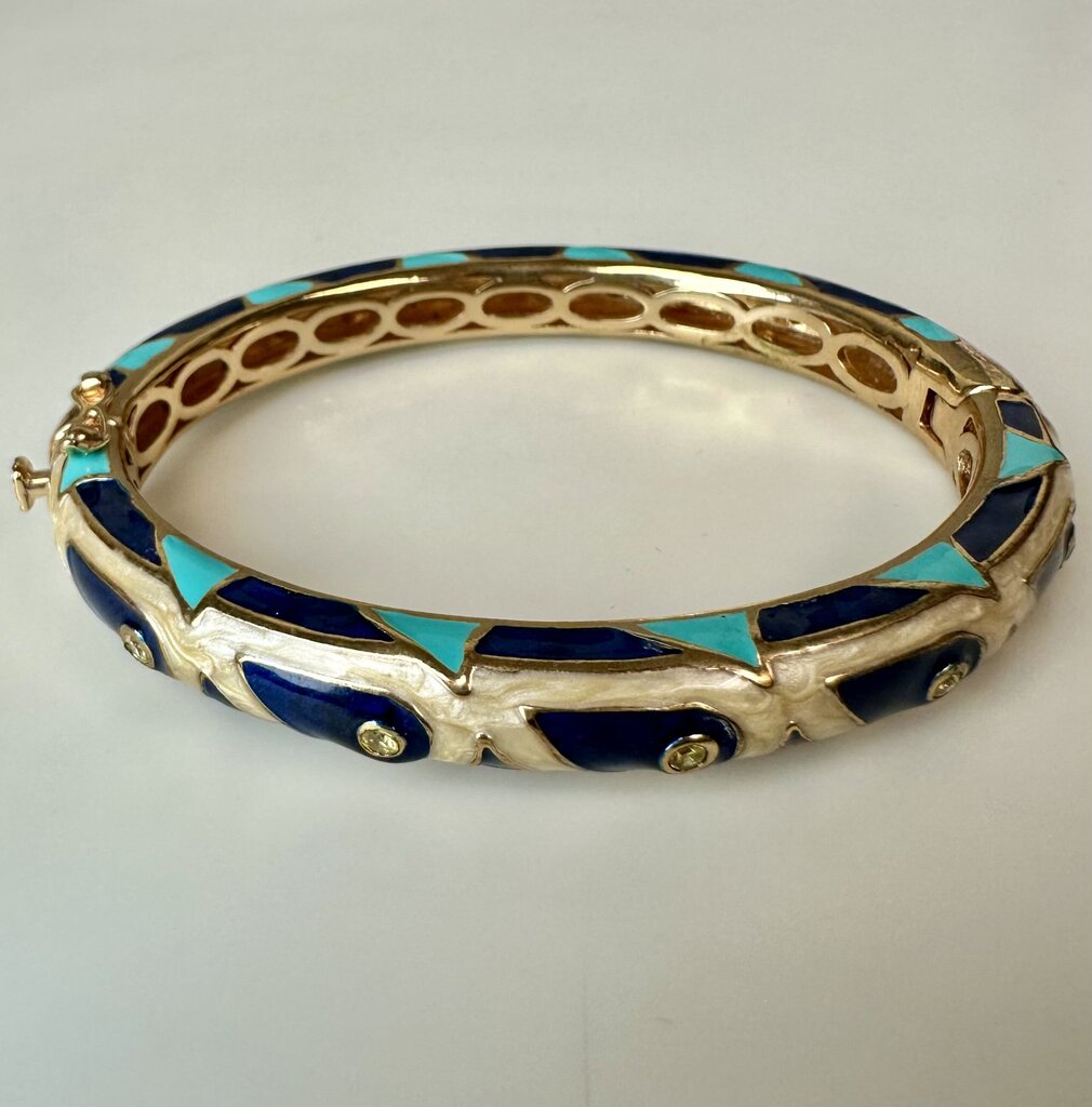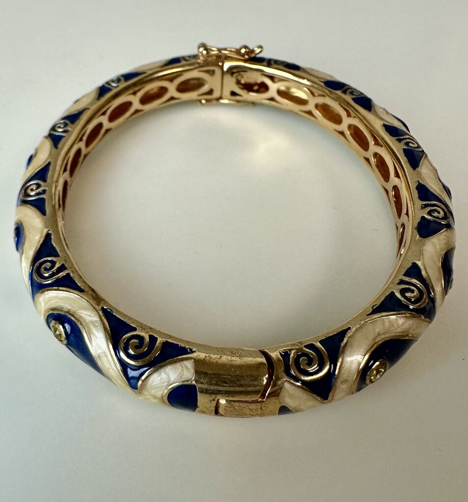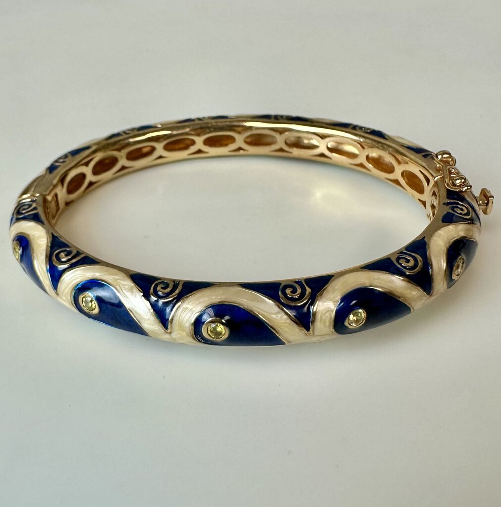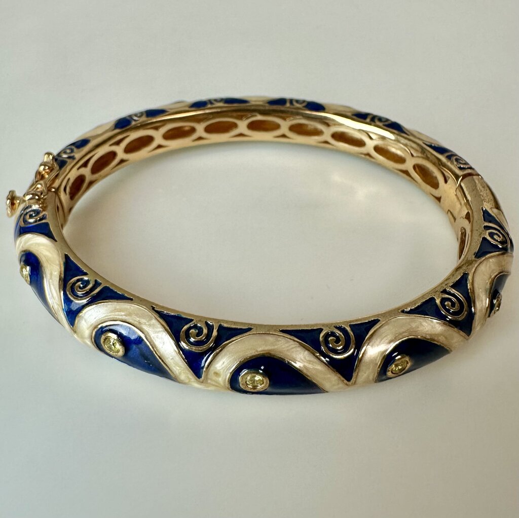 Lauren G Adams Navy Blue & Pearl Enamel CZ 18K Gold Plated Tear Drop Bangle Bracelet (7" Circumference)