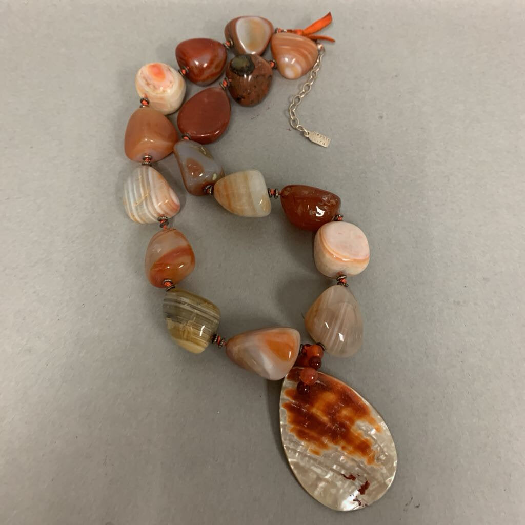 Peyote Bird Abalone Pendant on Carnelian Beaded Necklace (20")