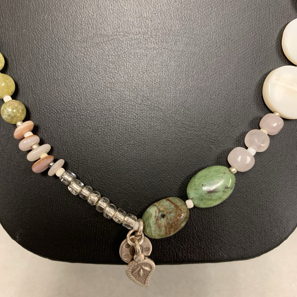 Peyote Bird Sterling Mother of Pearl Jasper Rose Quartz Necklace (36")