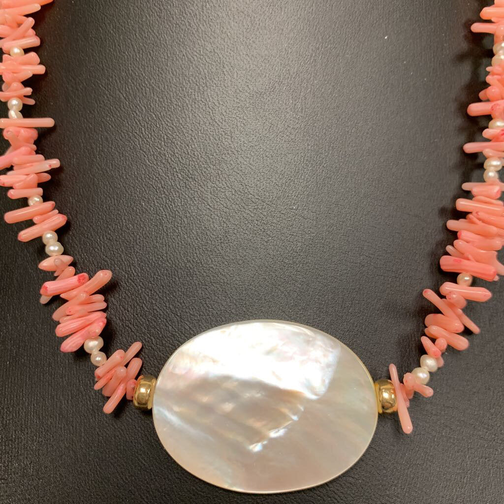 Pink Coral Freshwater Pearl Mother of Pearl Focal Bead Necklace (18")