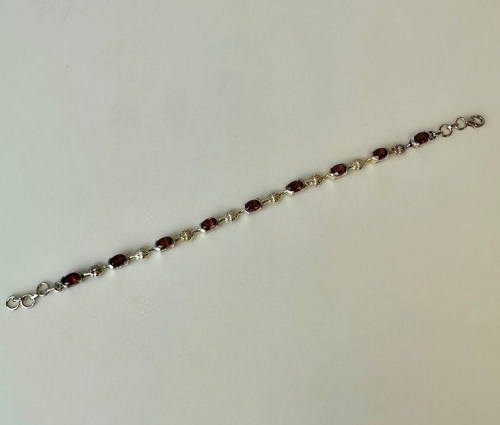 Platinum over Sterling Garnet Flower Link Bracelet (7.5")