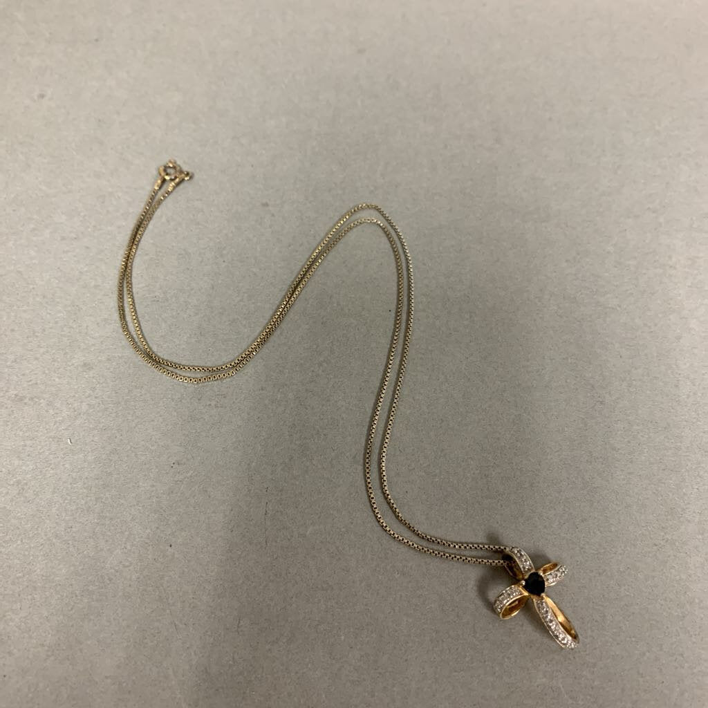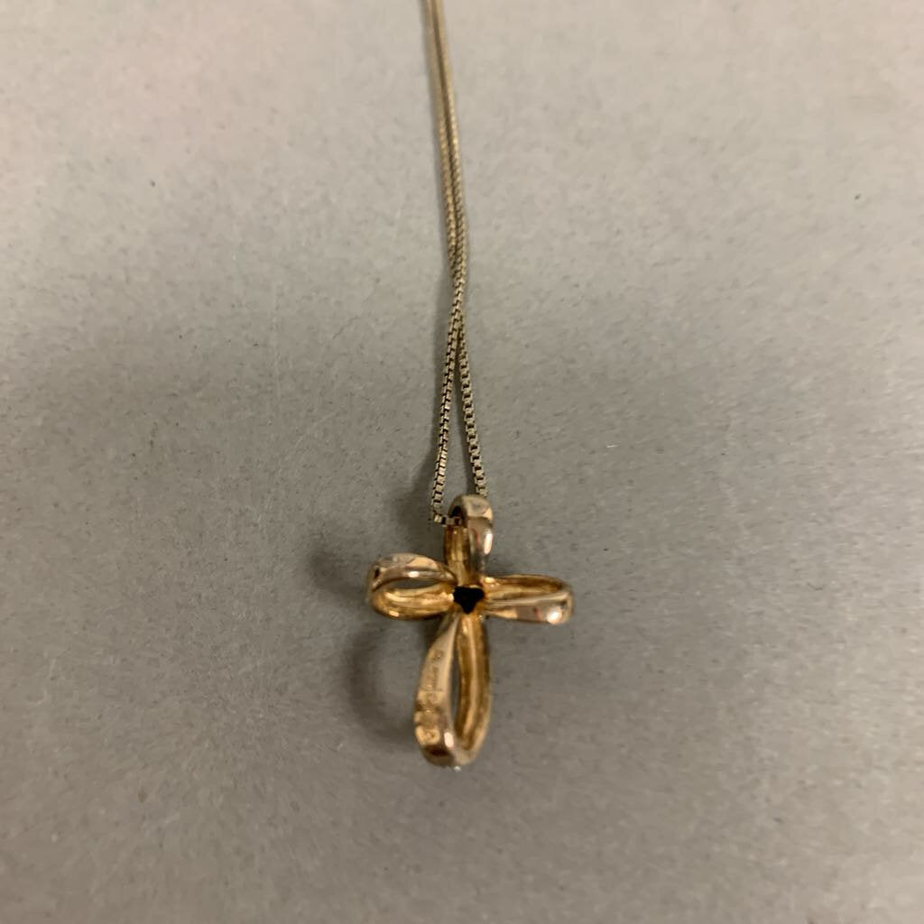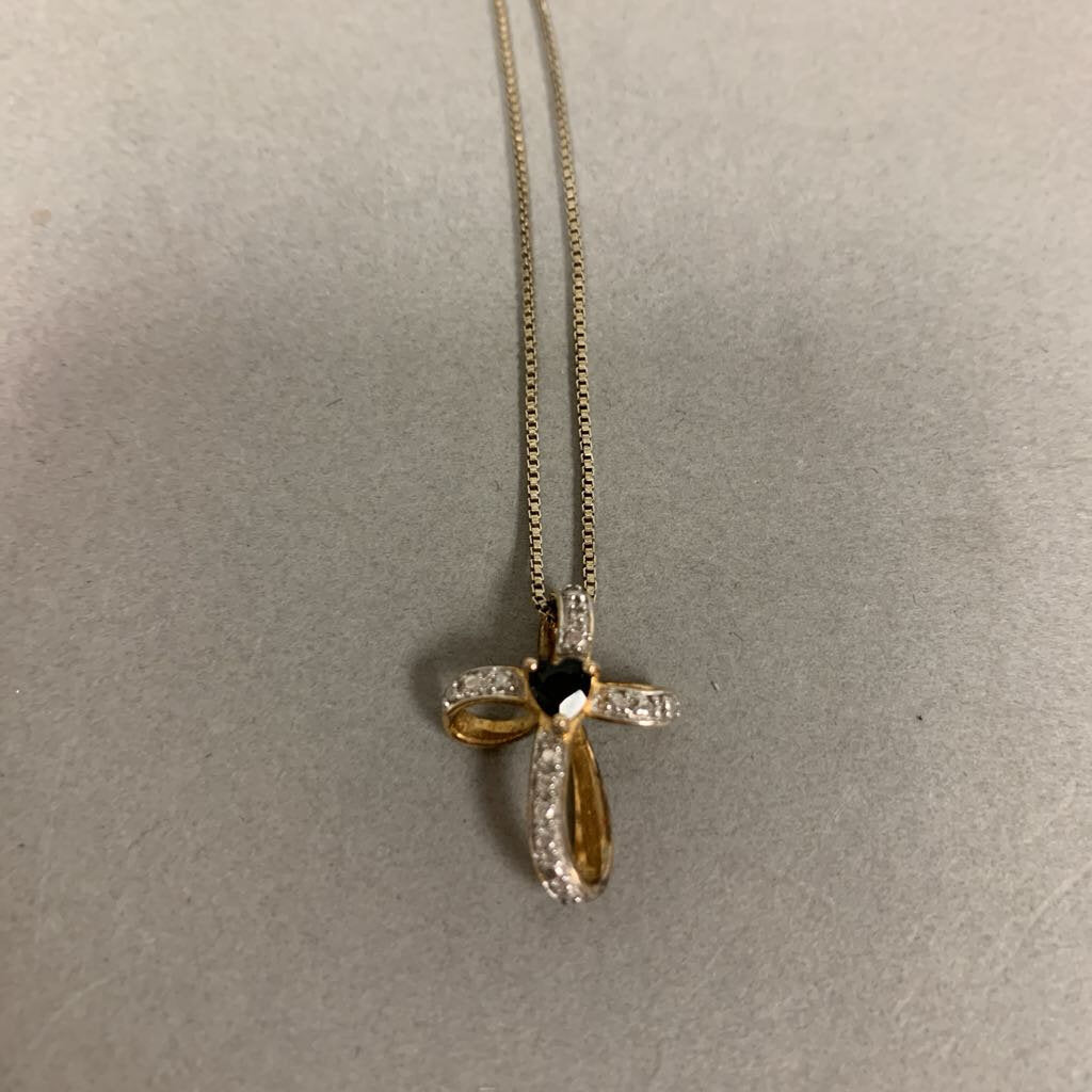 Ross Simons Sterling Gold Plated Sapphire Cross Pendant on 18" Chain
