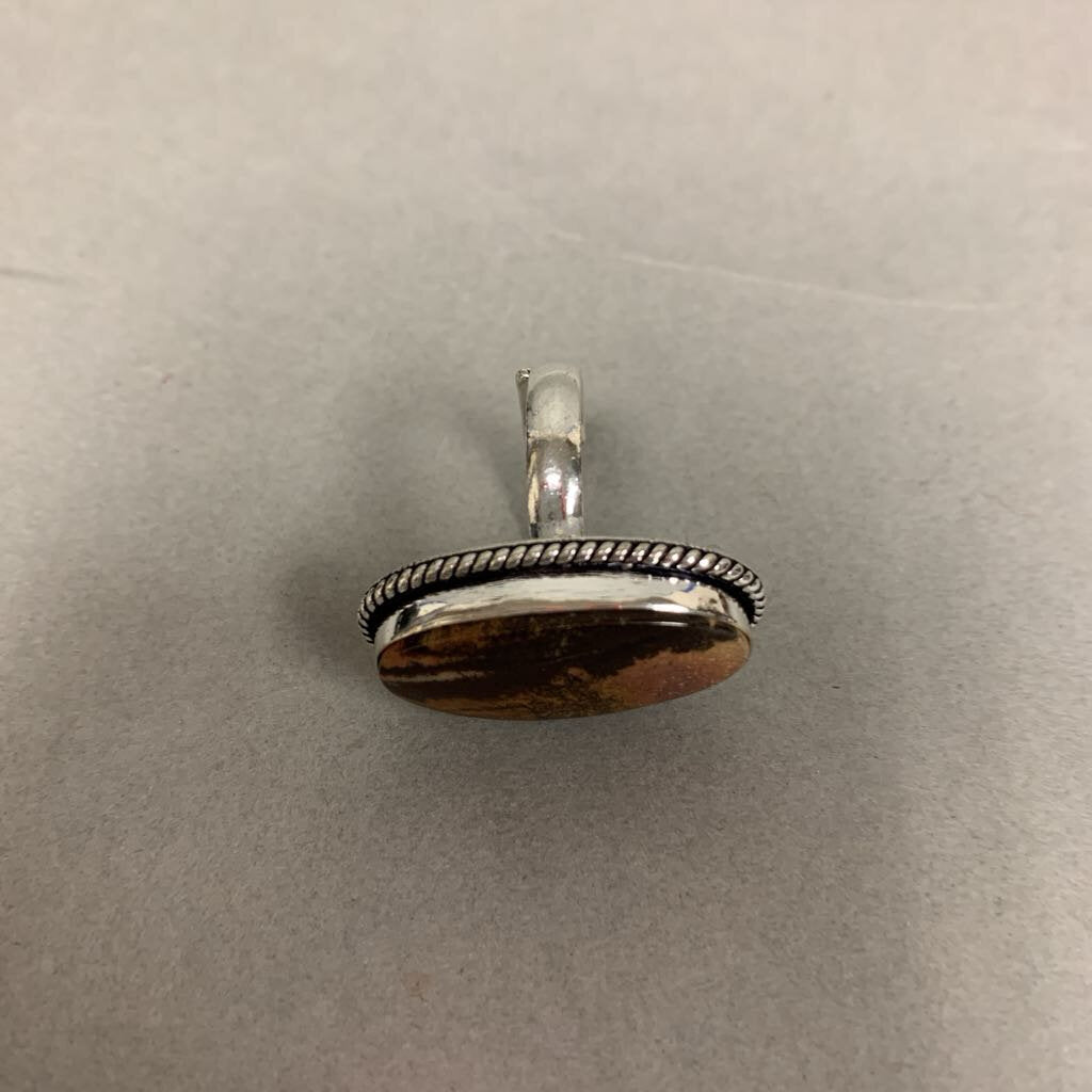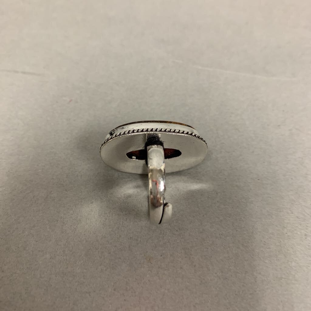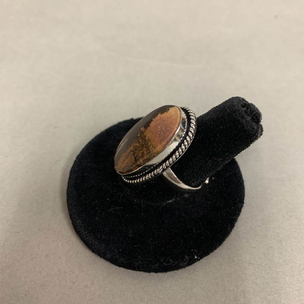 Silver Plated Brown Picture Jasper Ring sz 7 Adjustable