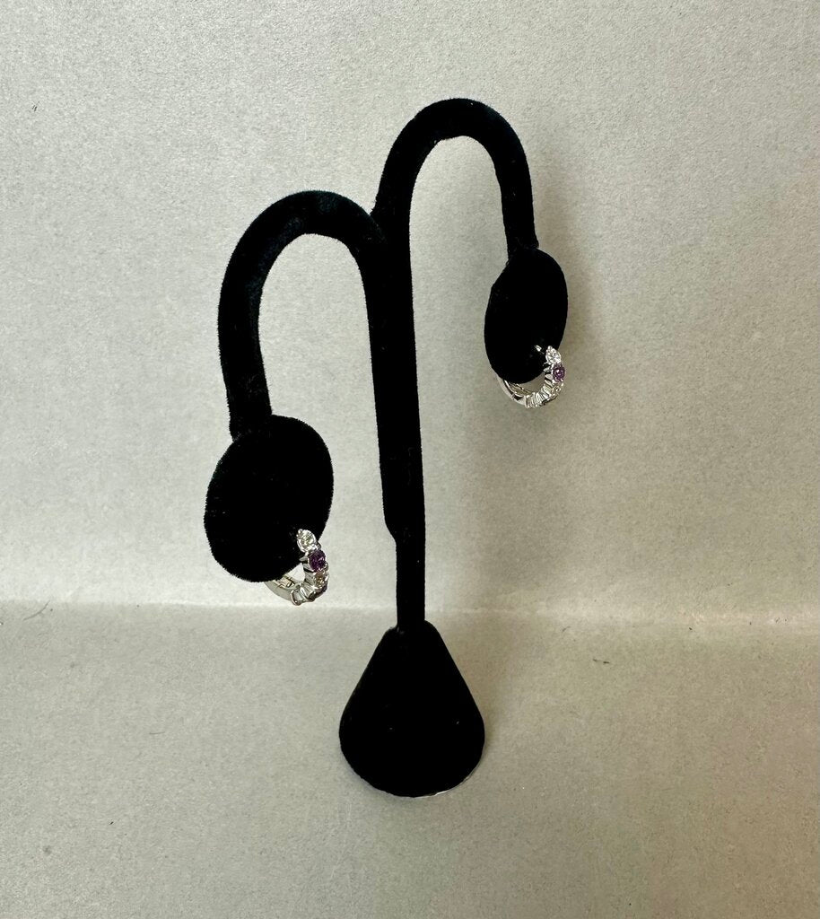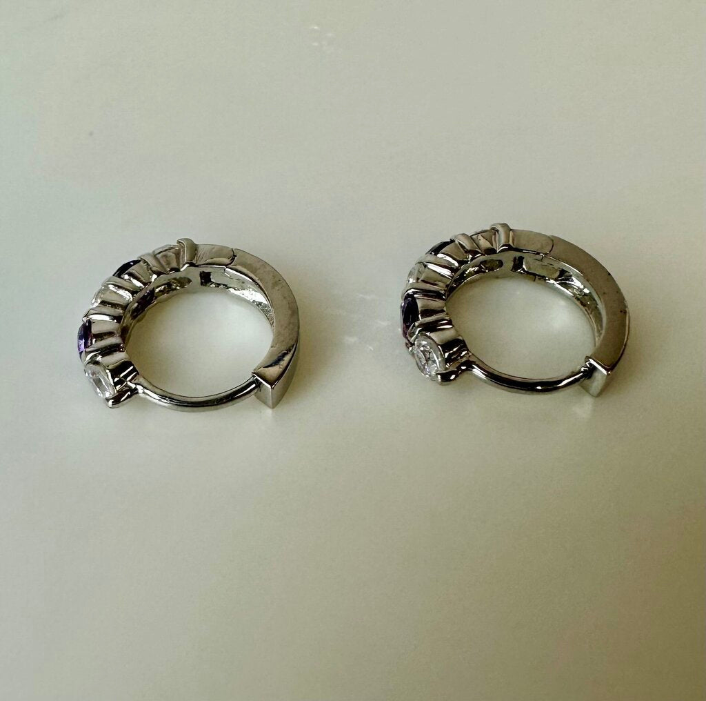 Sterling Amethyst Cubic Zirconia Hoop Earrings