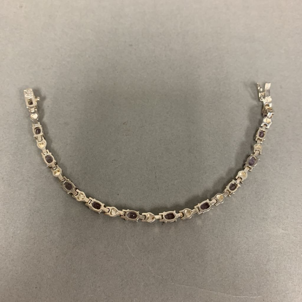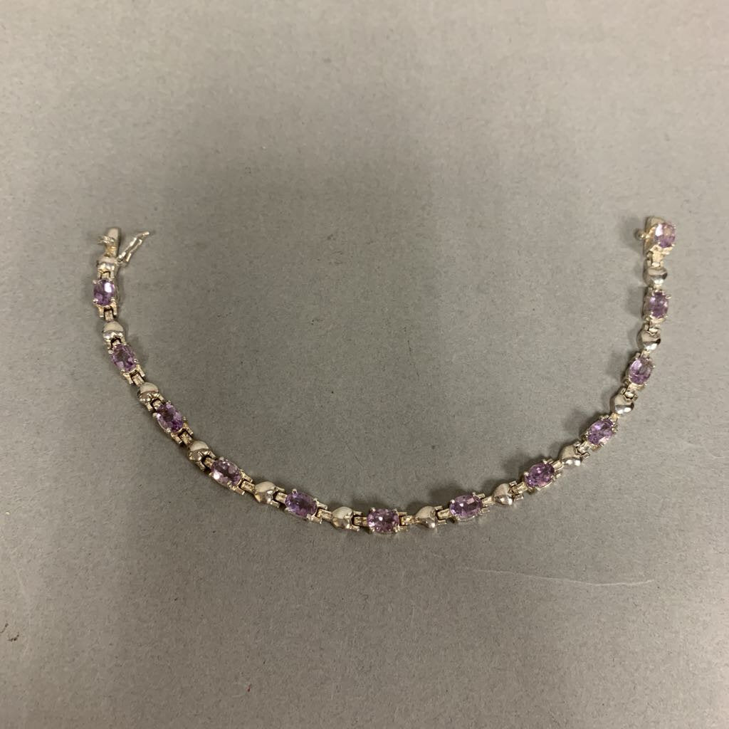 Sterling Amethyst Heart Link Tennis Bracelet (7.5")