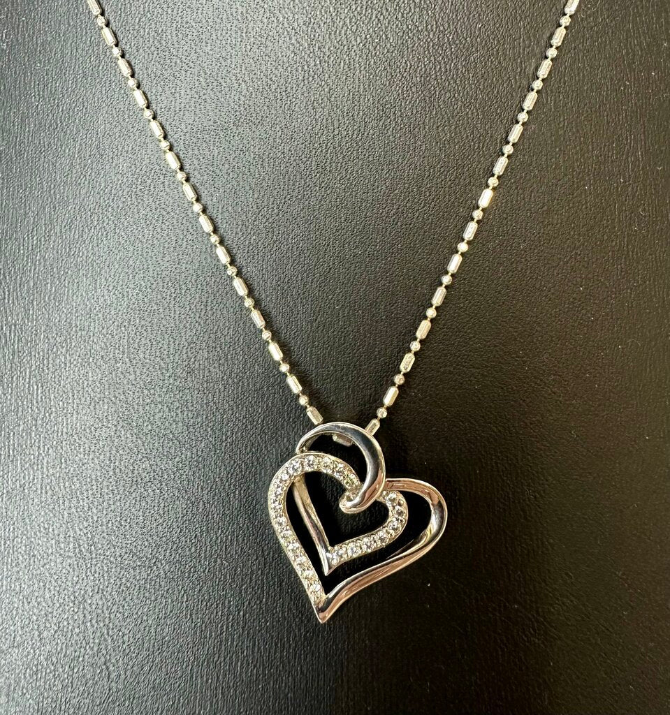 Sterling Cubic Zirconia Heart Pendant on 18" Chain