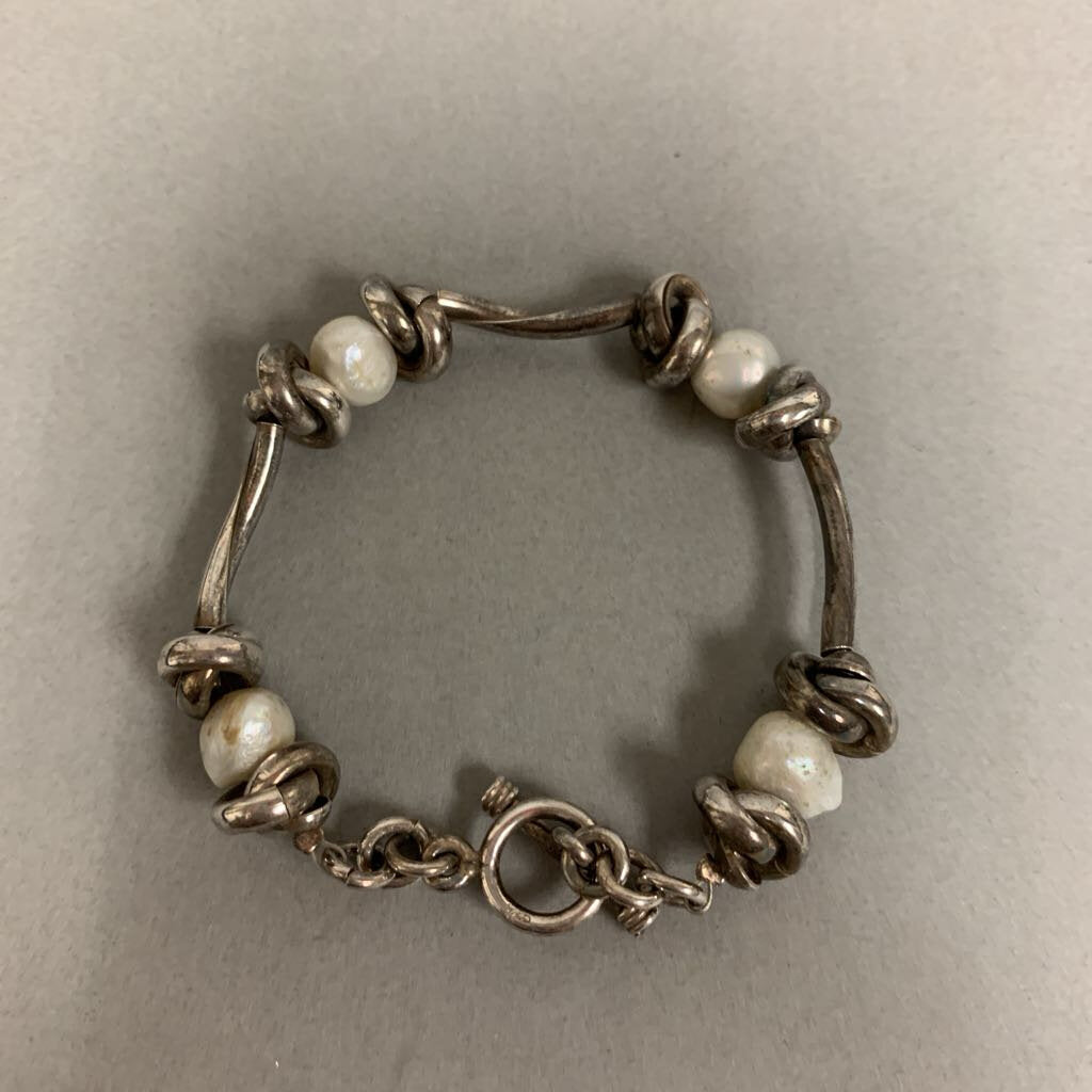 Sterling Freshwater Pearl Knot Toggle Bracelet (8")